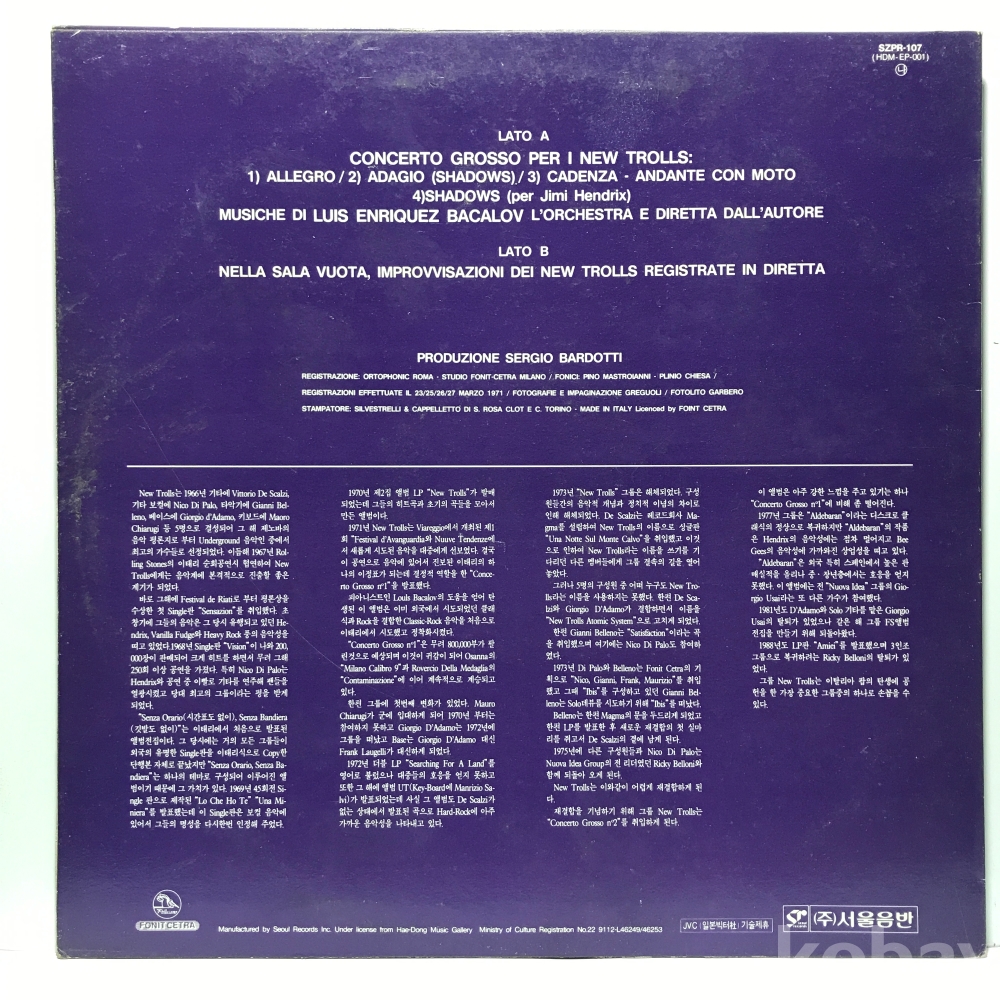 LP 83,800-49 New Trolls - Concerto Grosso Per I . 자켓 EX 알판 EX 91 년 국내반