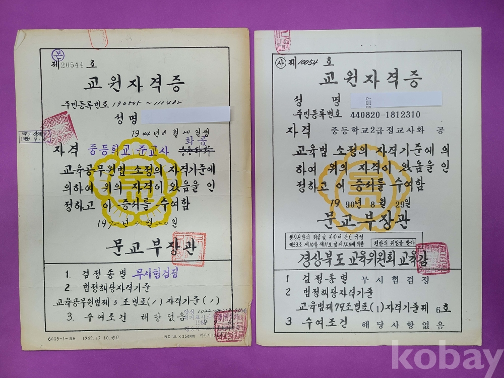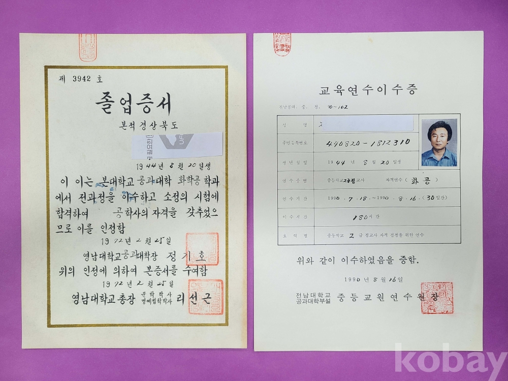 영남대학교 졸업 교사 일괄자료/자료,사진 등 10여점