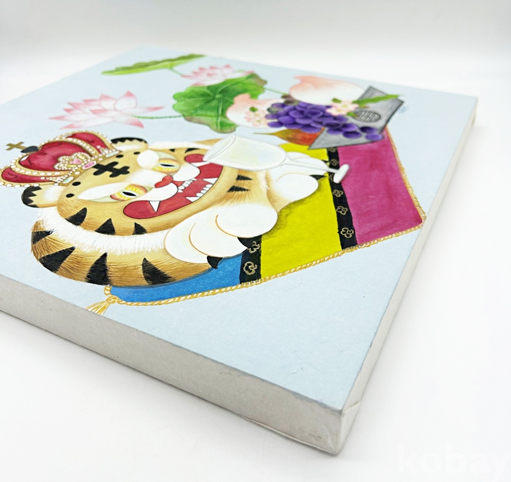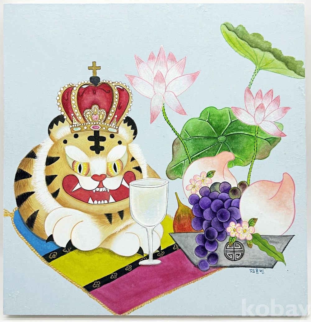 작가소개 | “언제 마음이 가장 편안해질까?’라는 질문을 자주 스스로 던져왔어요. 하고 싶었던 일에 도전할 때, 신나는 음악에 몸을 맡기고 춤출 때, 친구들과 어린아이처럼 웃고 뛰놀던 순간들은 항상 큰 힐링이 되었죠. 하지만 그 모든 순간을 떠올려 보면, 가장 깊고 따뜻한 위로는 결국 가족의 품에서 오는 것 같아요. 요즘은 가족의 형태가 정말 다양해졌죠. 혈연이 아니더라도 서로 기대고 위로가 되어주는 관계라면, 그것도 충분히 ‘가족’이라고 부르고 싶었어요. 이런 생각들을 바탕으로 이번 전시에서는 민화 속 호랑이를 의인화해 저만의 방식으로 ‘가족적 위로’를 표현해 보았습니다. 익살스럽고 귀여운 호랑이들이 서로를 보듬고, 웃고, 장난치며 기댄 채 쉬어가는 모습 속에 제 힐링의 순간을 담아봤어요. 전통 민화의 해학을 현대적인 감성으로 풀어내며, 여러분에게 작은 미소와 따뜻한 위로가 전해지길 바랍니다. 제 작품을 바라보는 동안, 각자 가장 편안한 시공간을 떠올려 보셨으면 좋겠어요. -정효빈 작가- ” 2022. 개인전 온량호랑 2023. 대한민국 베트남 수교30주년 기념 교류전 2024. 카자흐스탄 국립중앙박물관 책거리전 2025. 스위스 민화 전시 (스위스 레오나르도 다빈치 갤러리) 2025. Color inside 5인전 |