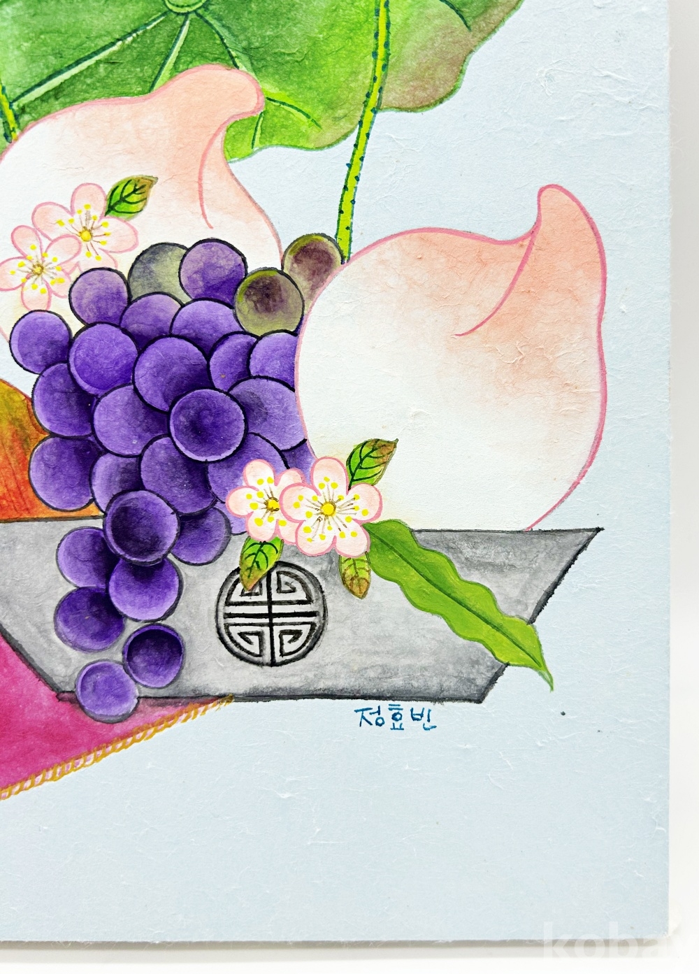 작품정보 | 재료 : Color pigments on jangji (traditional Korean paper) 크기 : 27 x 27 cm 제작년도 : 2024년 signed and dated on the lower right |