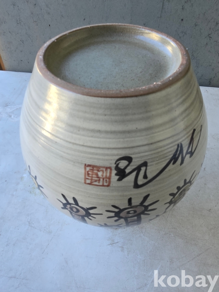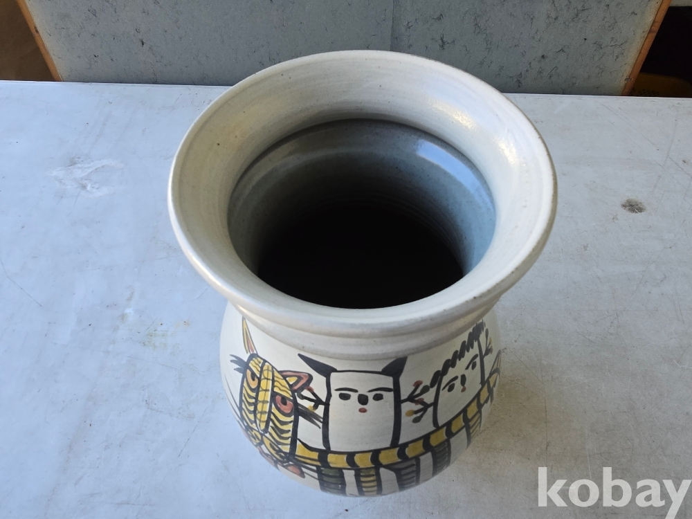 중광 그림이 있는 입이 큰 도자기 입니다.