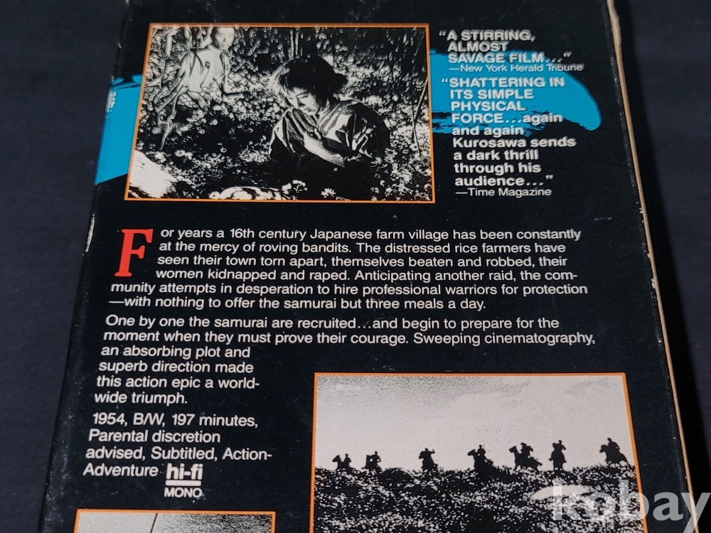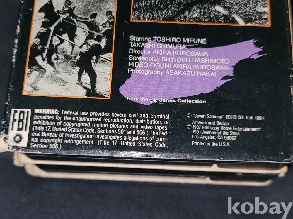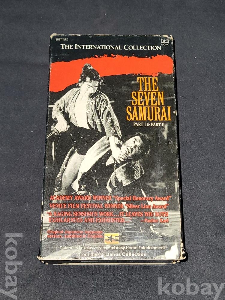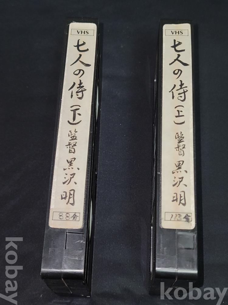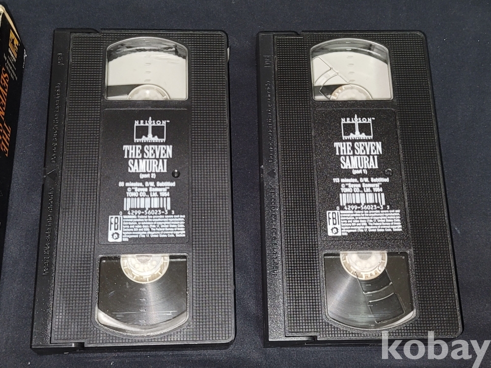 빈티지 영화 비디오테이프 쿠로사와 아키라 감독의 고전 흑백 영화인 1954년 작 "7인의 사무라이"의 VHS 테이프 상, 하 2종입니다.