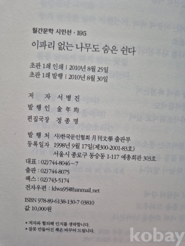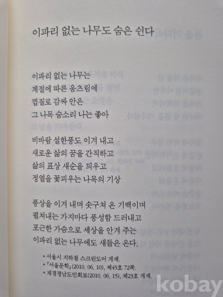 2010년 발간한 첫 시집 『이파리 없는 나무도 숨을 쉰다』