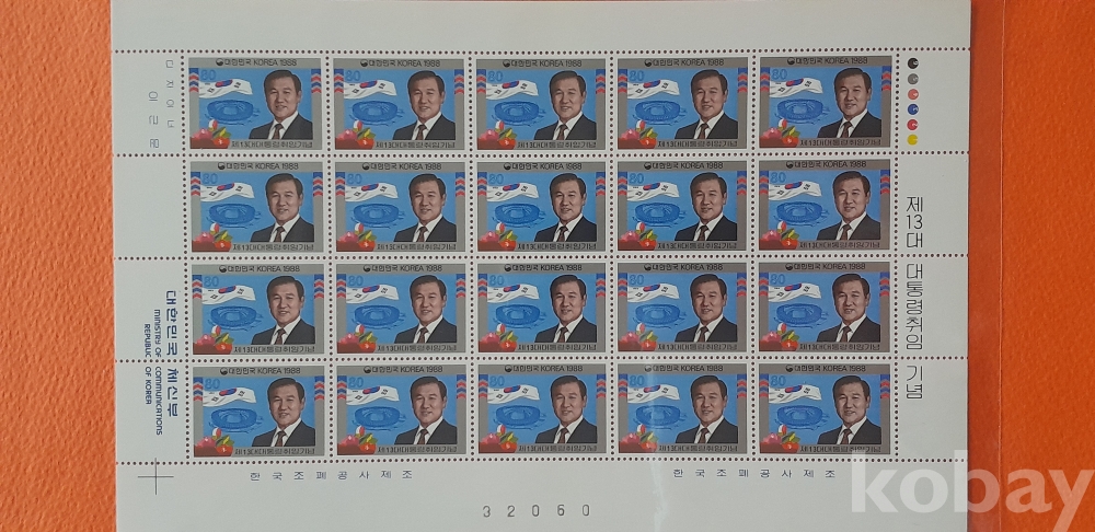 1988년 제13대 노태우 대통령 취임 기념 20매 전지 입니다.