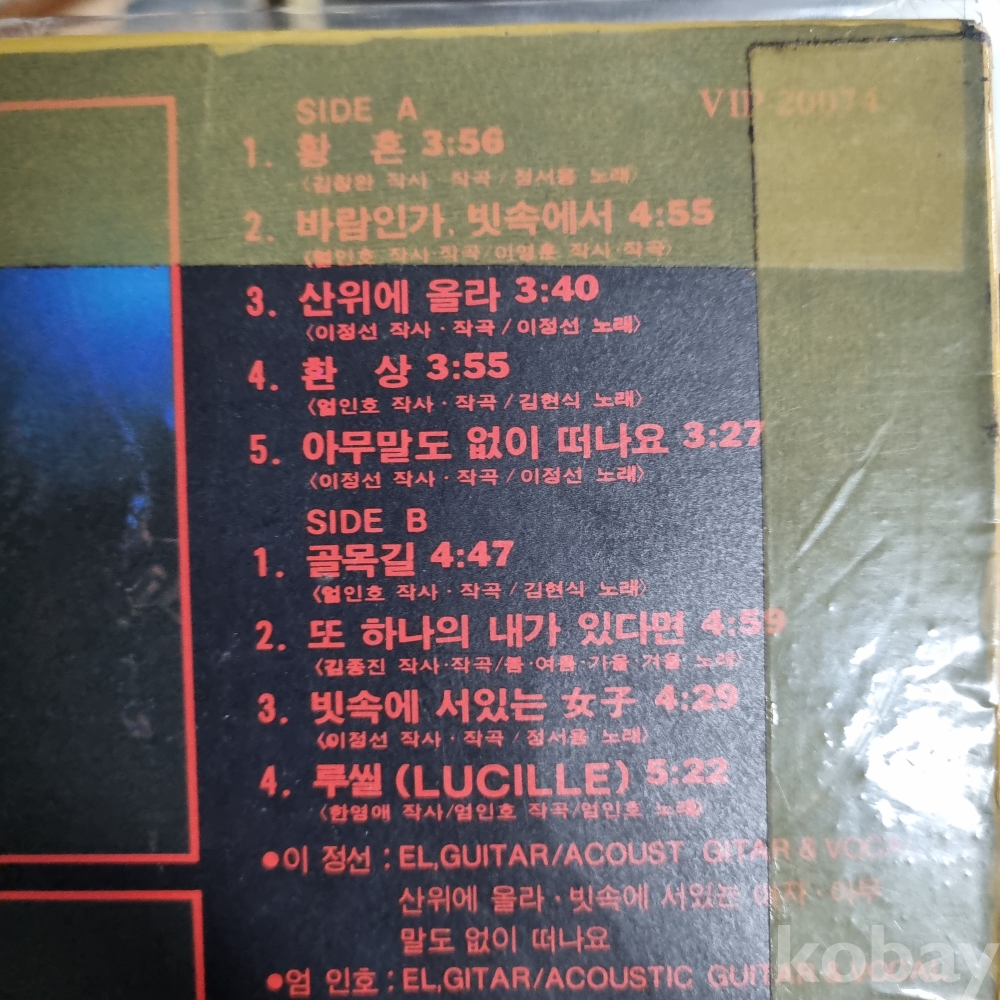 | 자켓상태 | EX : 약간의 마모, 모서리 찢김 존재 | 음반상태 | EX : 재생에 영향 없는 가벼운 기스 존재 | 발매정보 | 초반 | 가사지여부 | 무 |