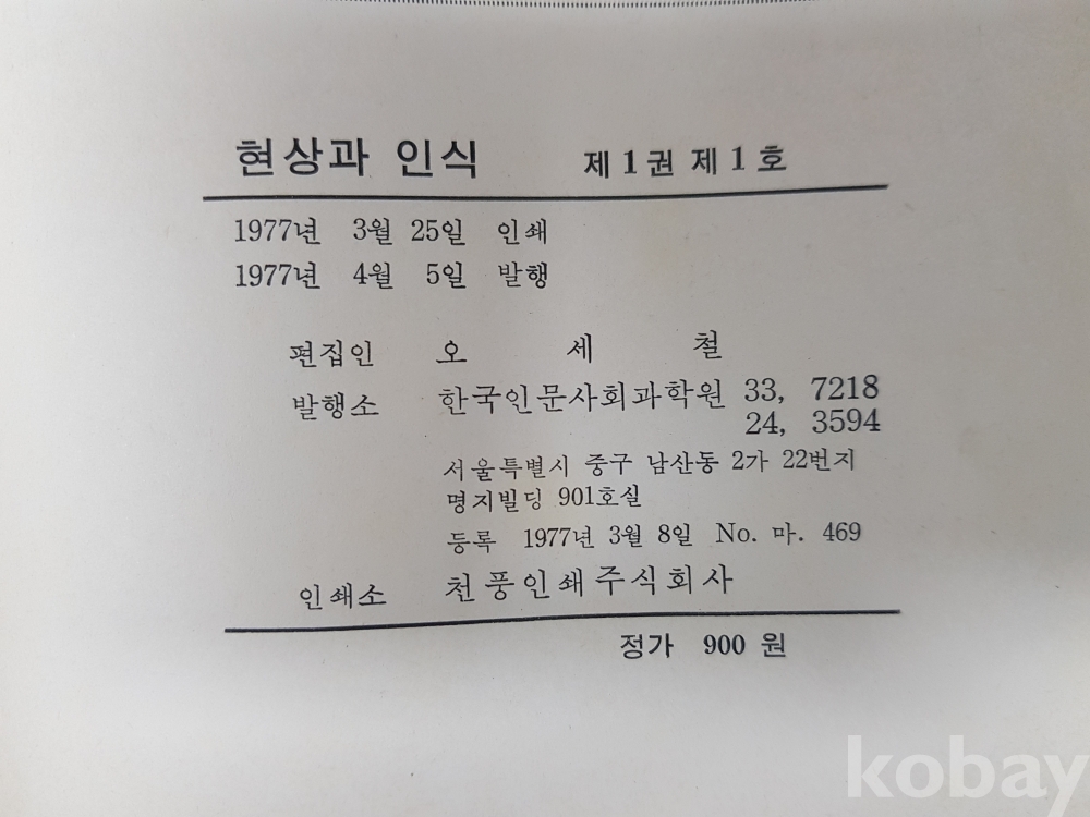 [창간호] 현상과 인식*1977년,한국인문사회과학원, 198p