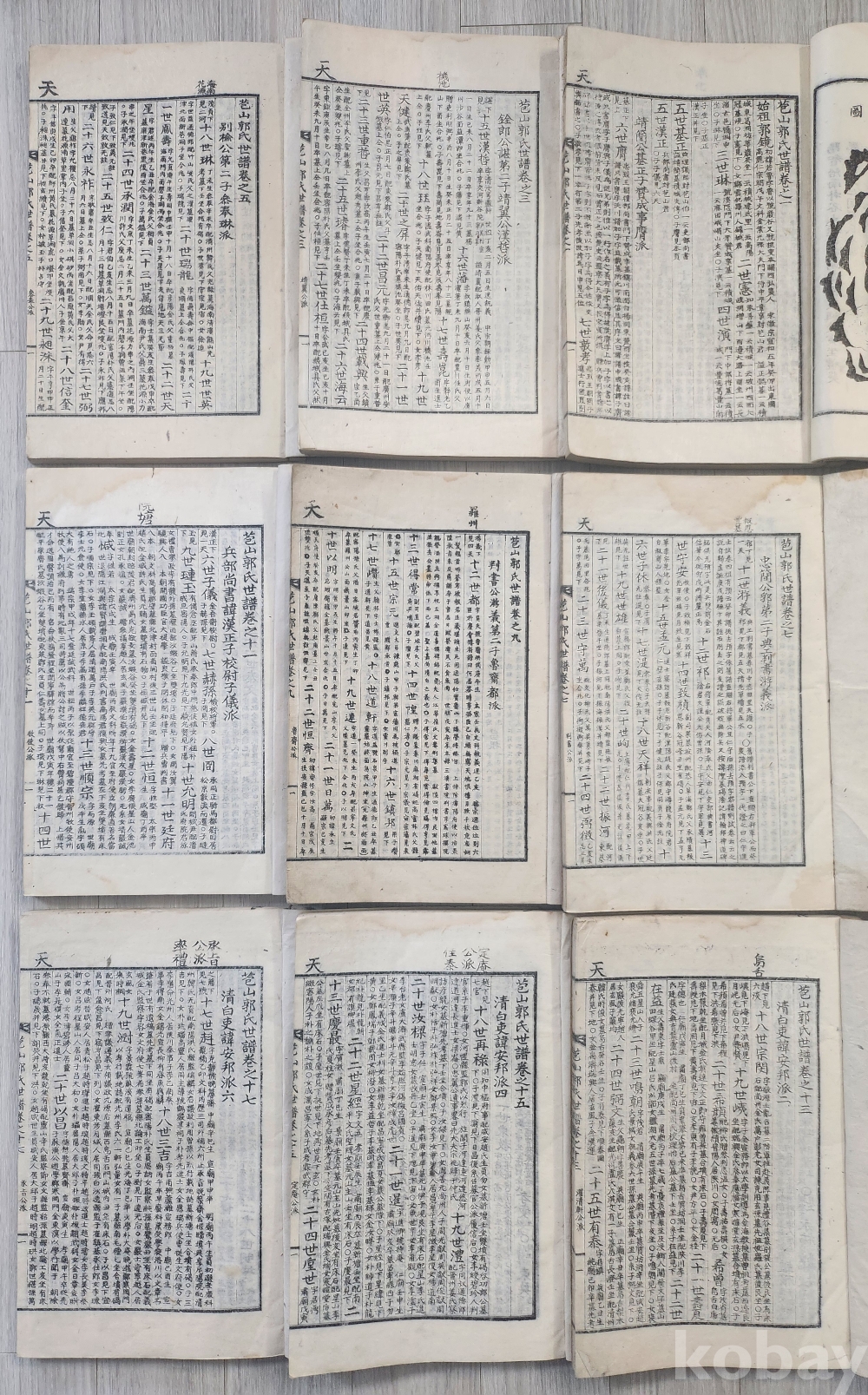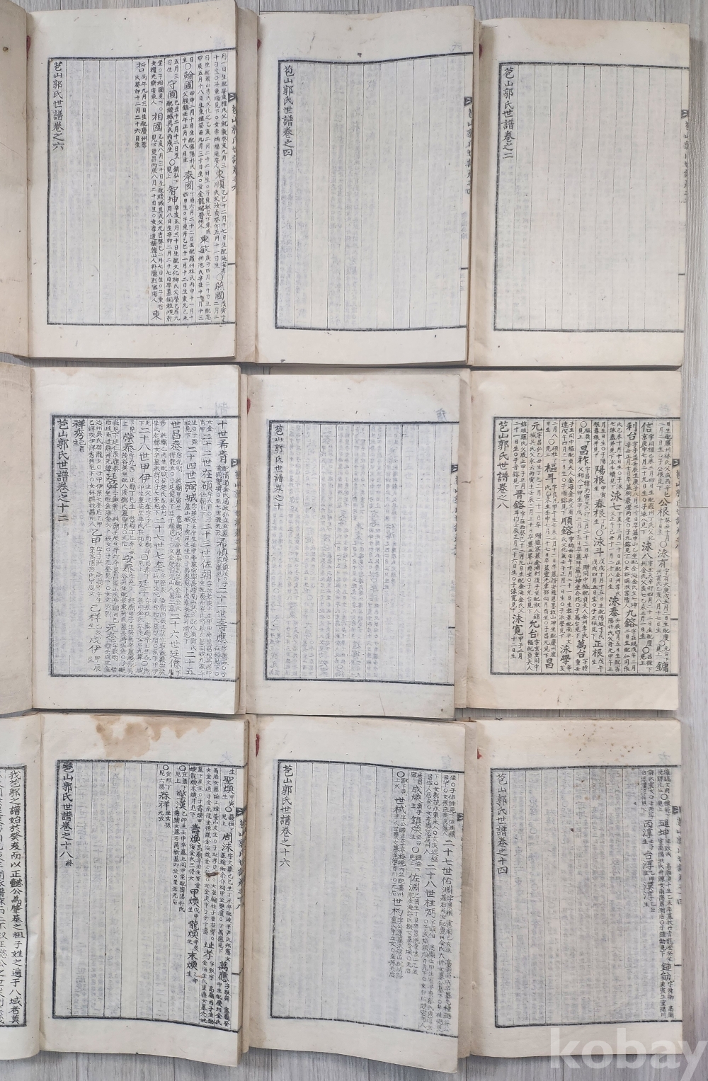 대정14년 1925년 100년전 발행경남과 경성제작된 귀한성씨 포산곽씨세보 입니다 9책 완질 입니다 1책은 포산곽씨 세보서 서문책이고 8책은 1-18권 (종) 세보 입니다 상태 매우 양호합니다