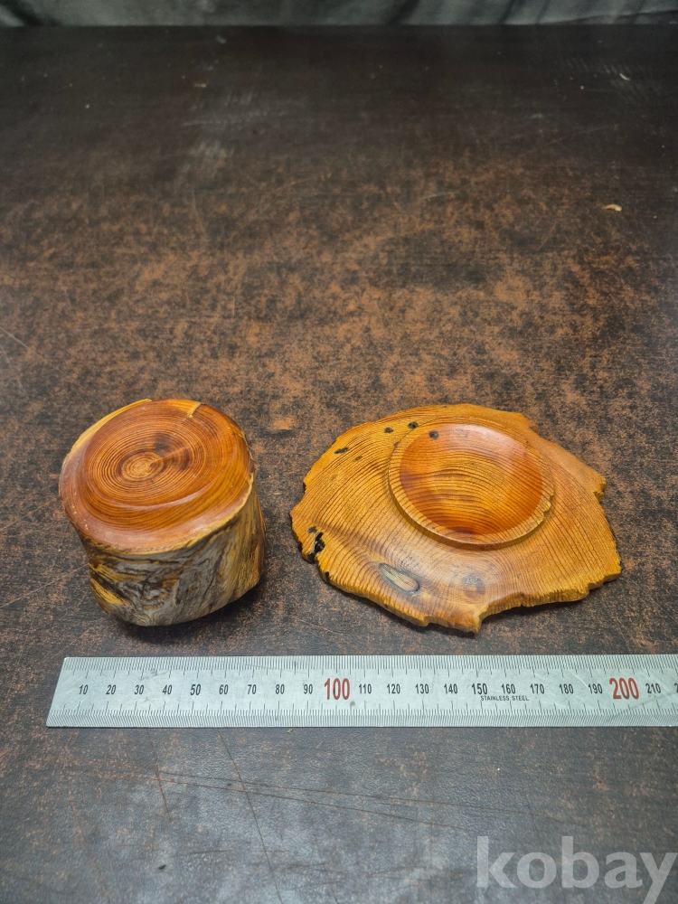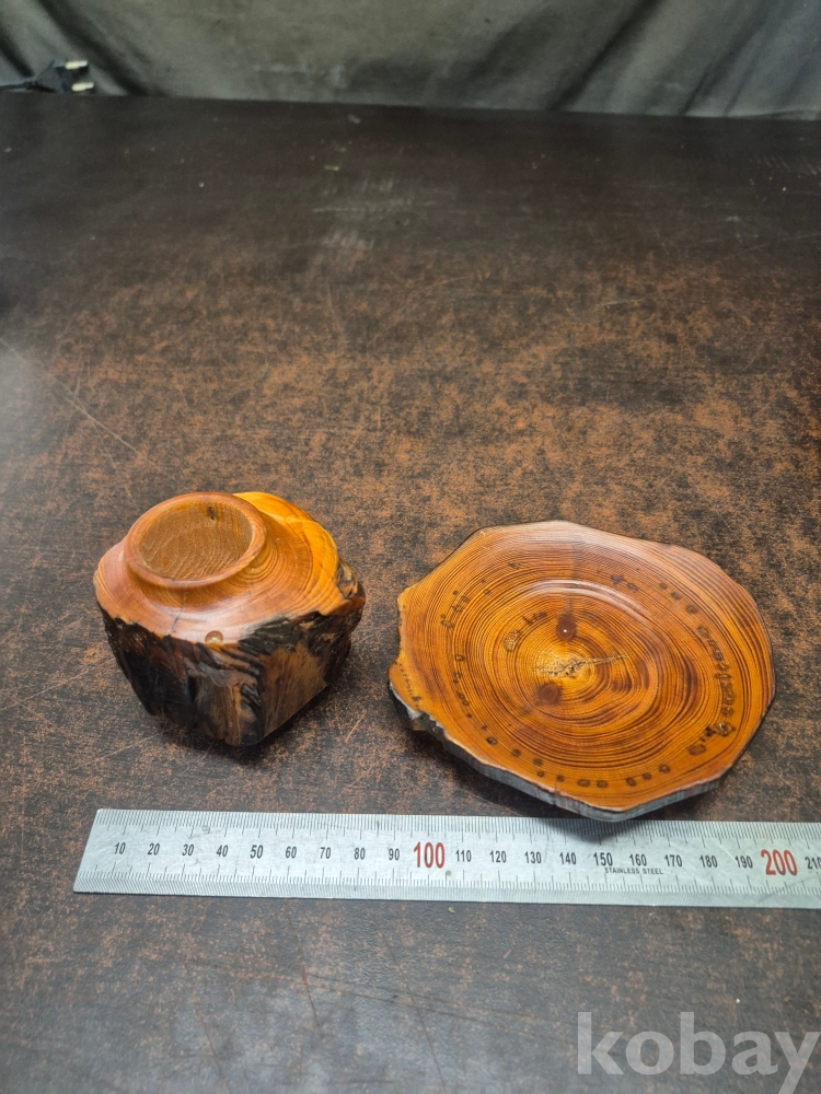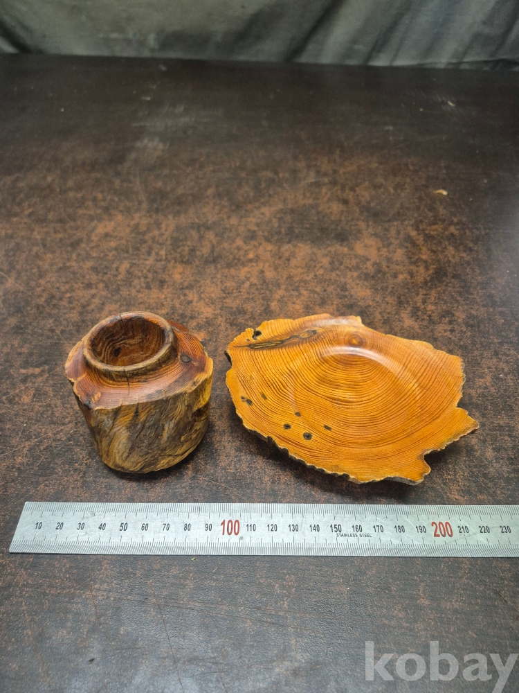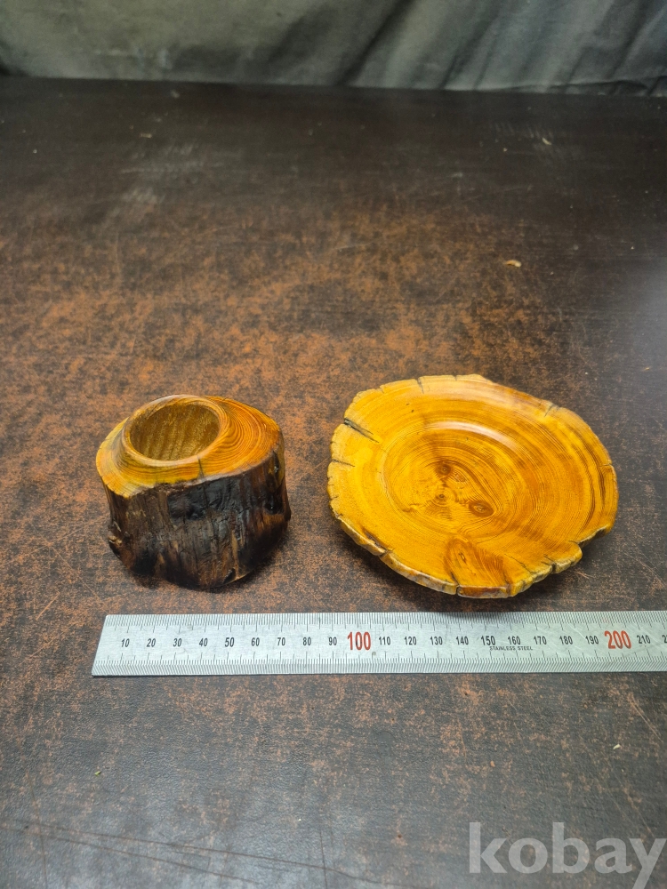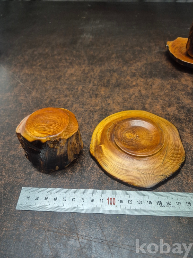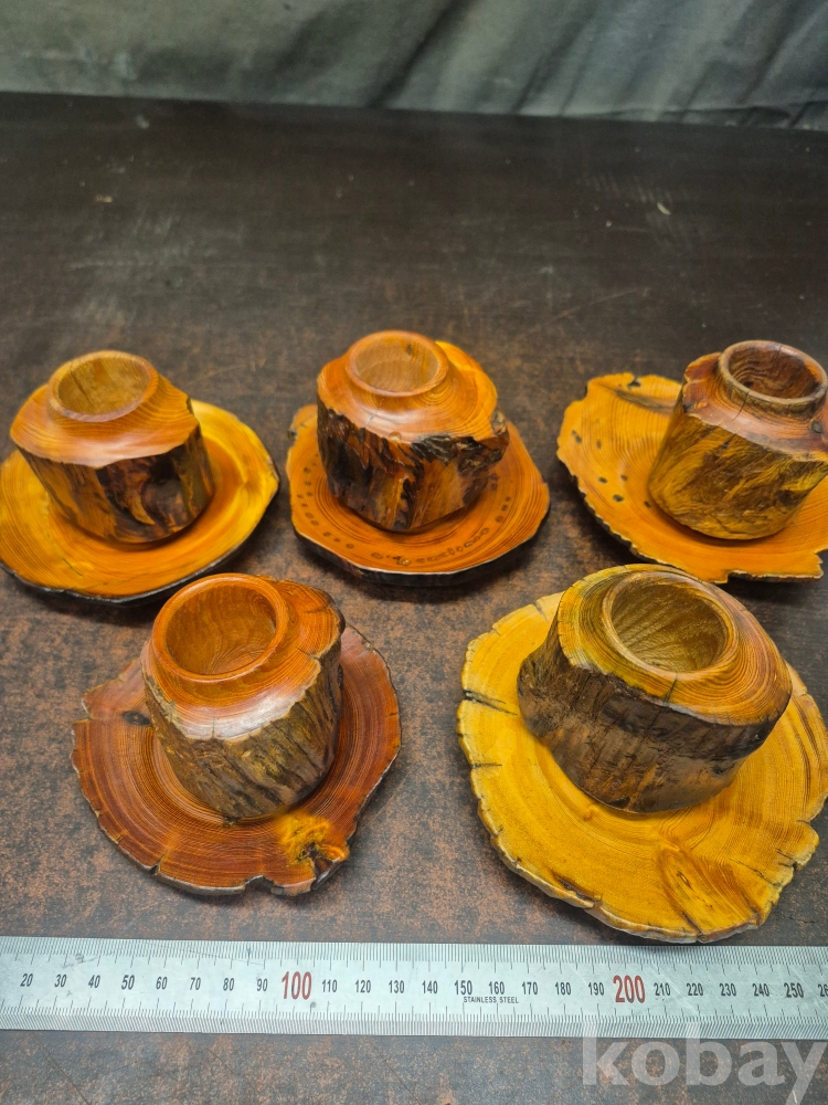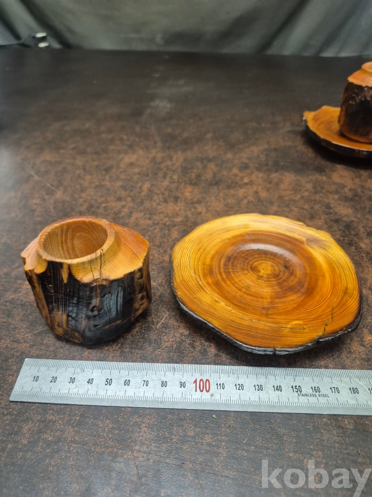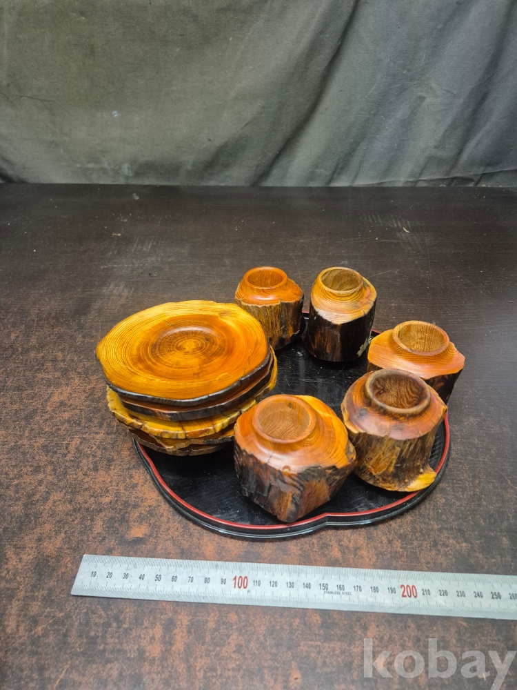 오래된 관솔로 만든 고목 술잔과 고목 접시 5점 세트 일괄 8*6*7