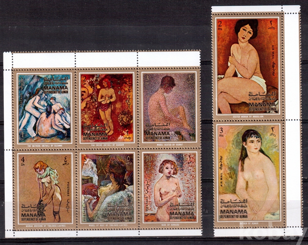 (누드명화) Manama (마나마) 폴 세잔외 누드화 sheet of 6 +pair MNH