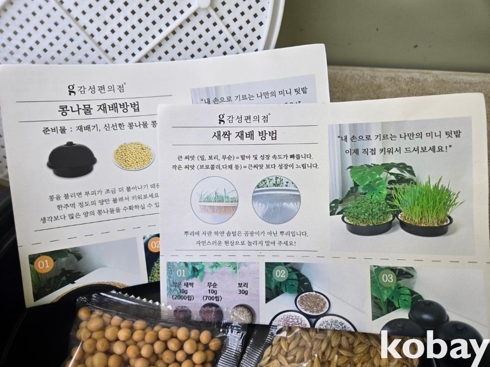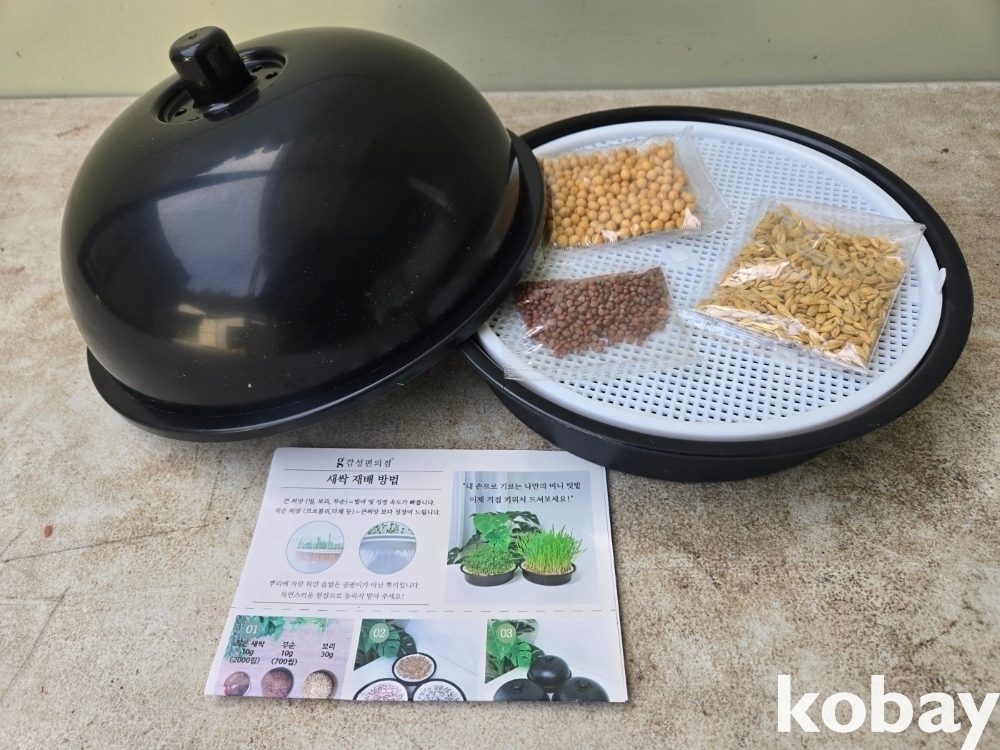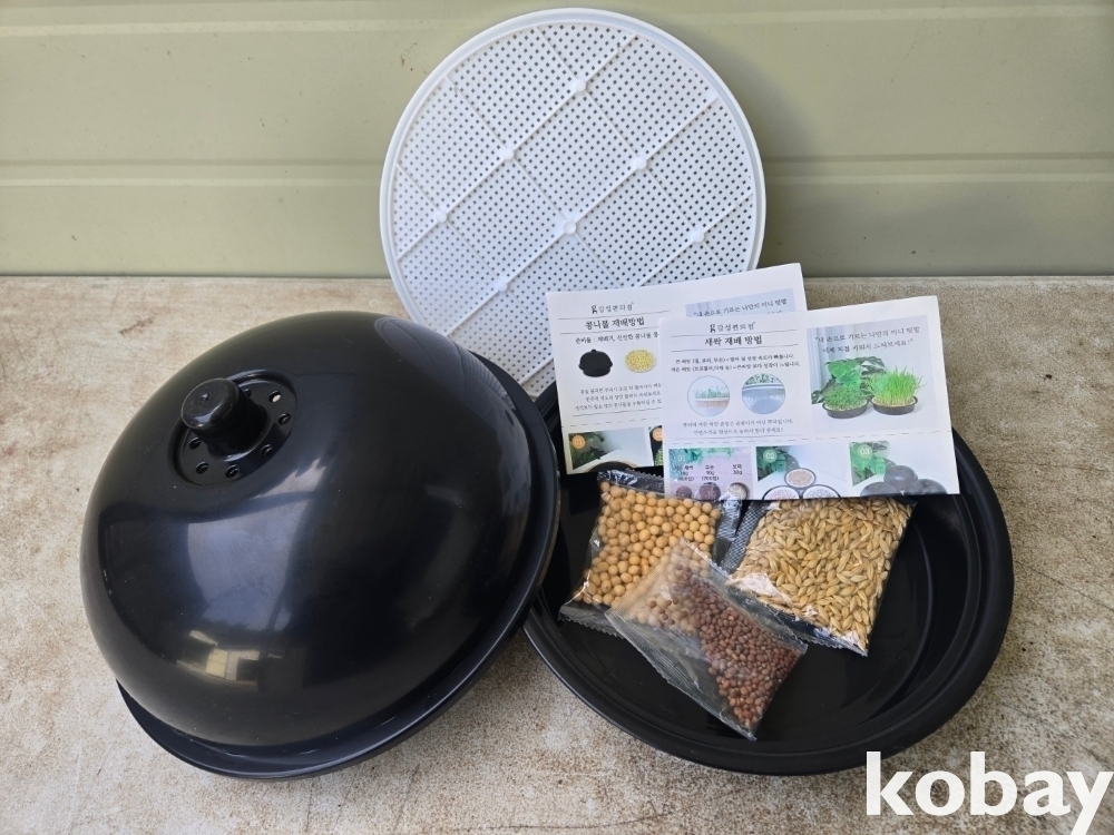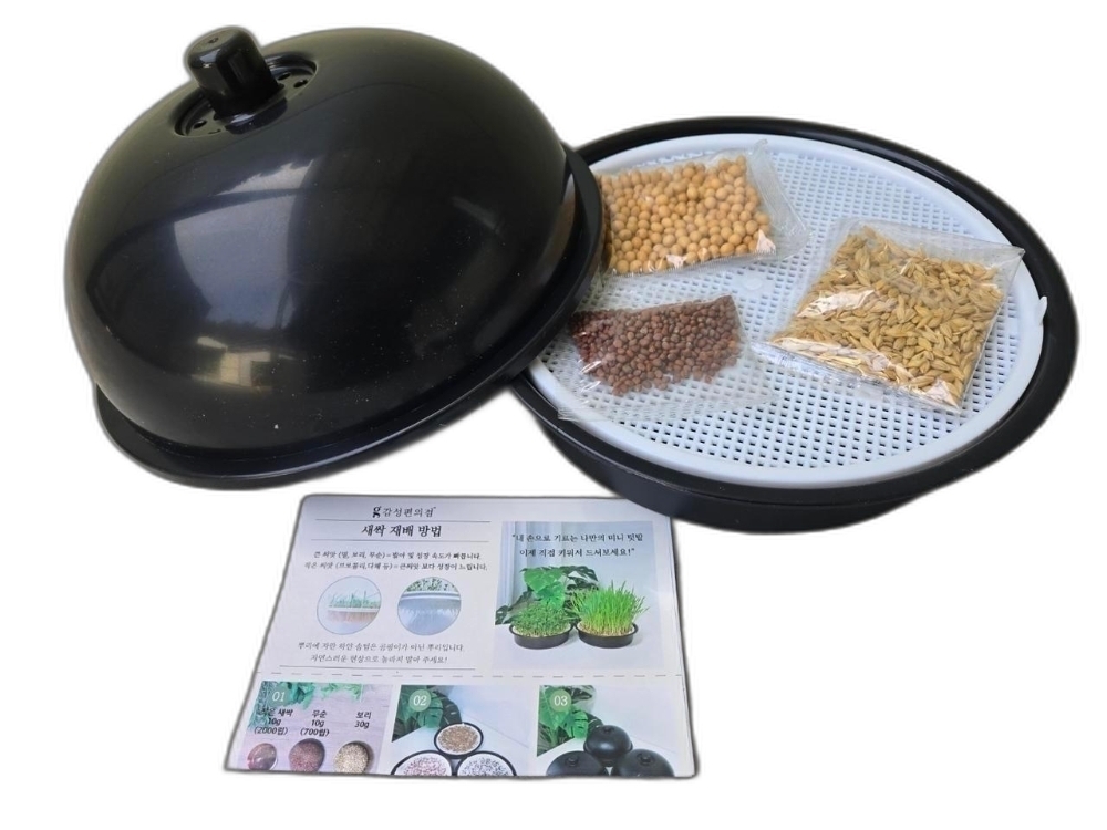 새싹을 수경 재배 할 수 있는 플라스틱 통 입니다.