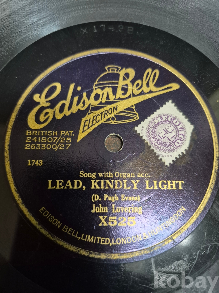 1927년 돌판 존 로버링 의 오르간 반주곡 LEAD ,KINDLY LIGHT 수록된 에디슨 벨 일렉트론 돌판 1점 30*30*0.5