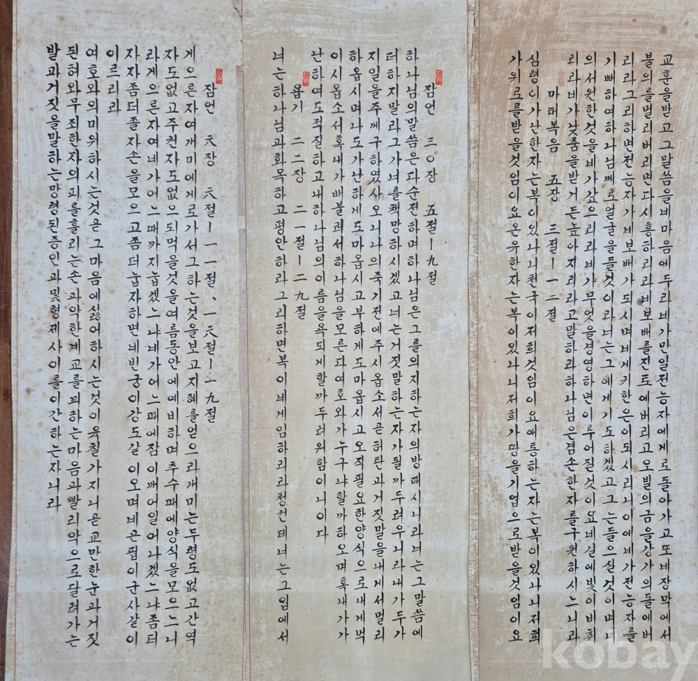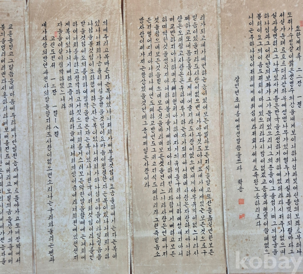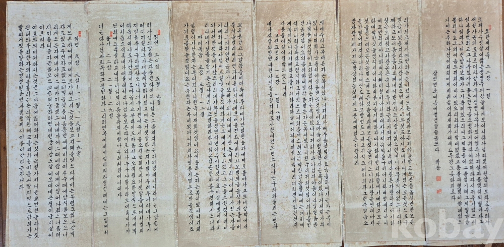 오래된 작품성 좋은 한글 6폭 서예 병풍'이오니 작품 이미지상 수결 및 낙관'등 두루 잘 참조하시고