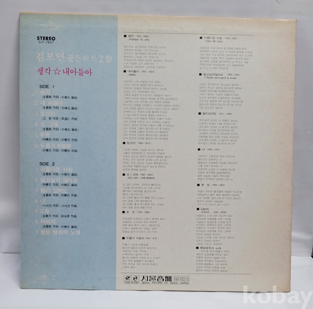 | 자켓상태 | EX : 약간의 마모, 모서리 찢김 존재 | 음반상태 | NM : 개봉했으나 미사용급, 스크래치 없음 | 발매정보 | 초반 | 가사지여부 | 무 |