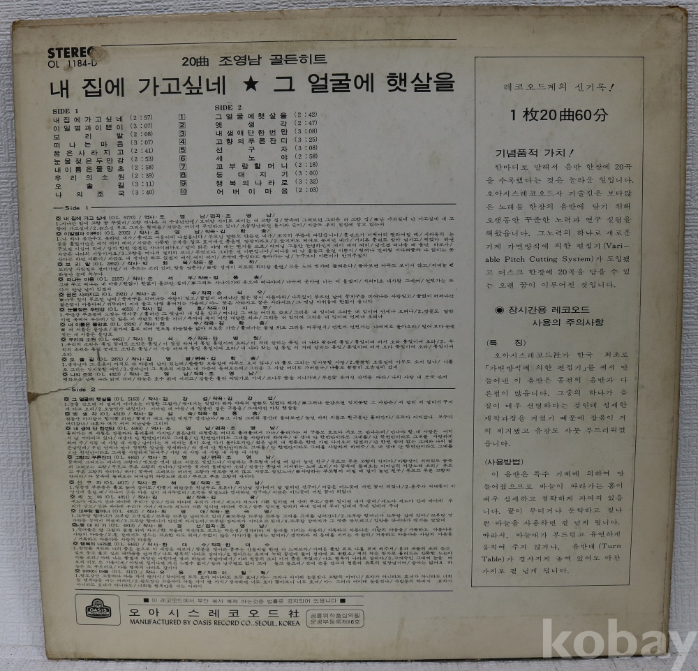 | 자켓상태 | VG : 주름, 접힘, 모서리 찢김 다수 | 음반상태 | VG : 생활 기스 다수, 가벼운 노이즈 존재 | 발매정보 | 초반 | 가사지여부 | 유 |