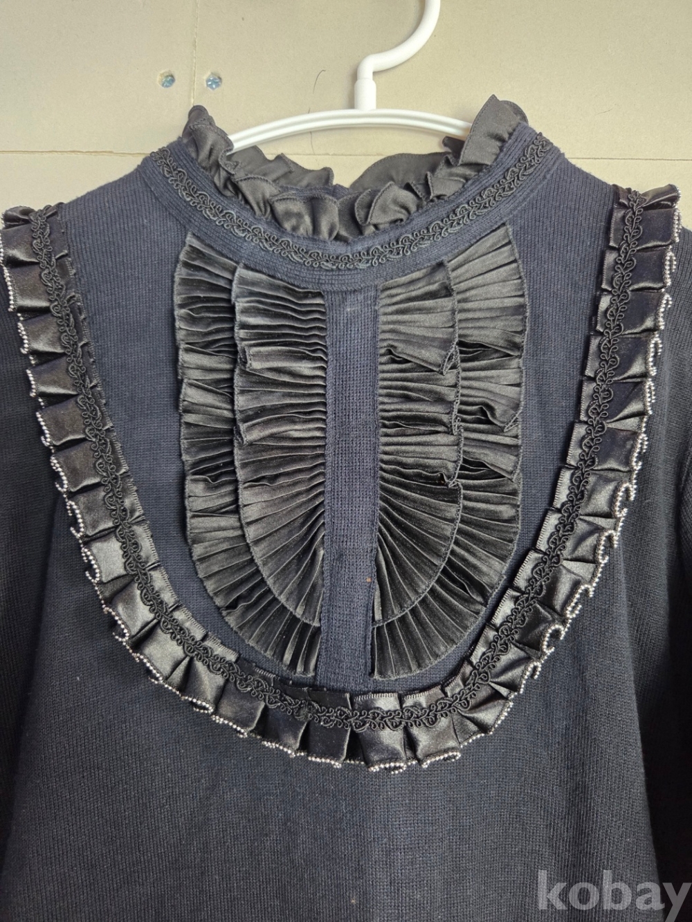 [천원옷장] A-0270 벨펫 프릴 포인트 블라우스 블랙 44~55