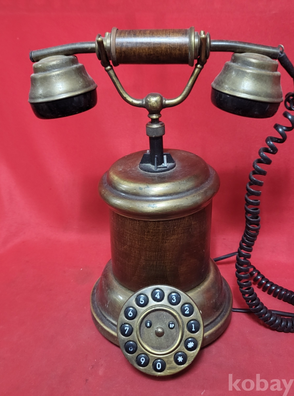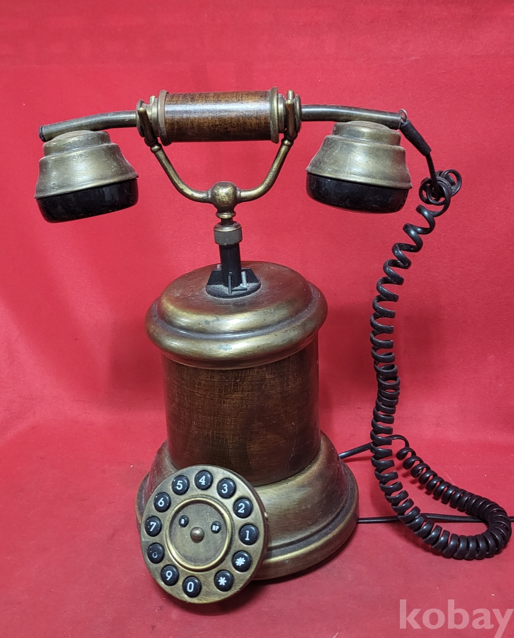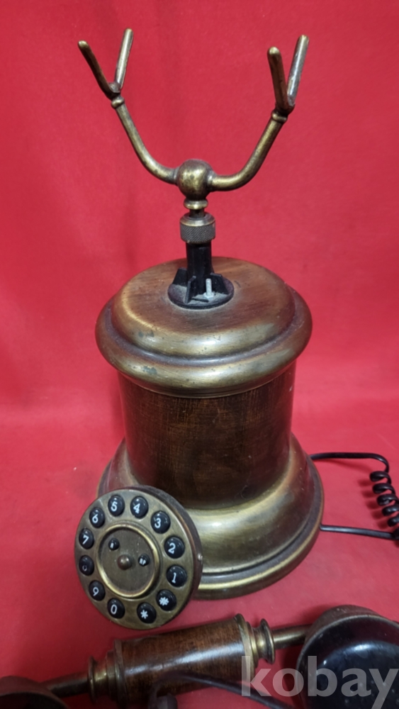 황동(黃銅)과 나무로 완성된 이탈리아 제조 옛날 버튼식 전화기입니다