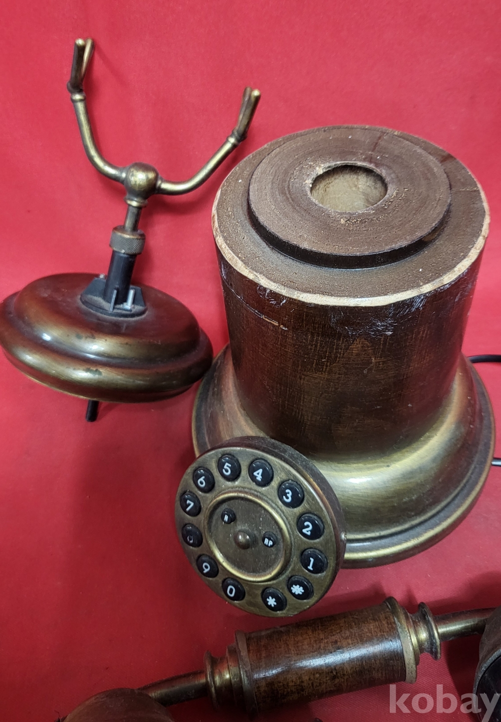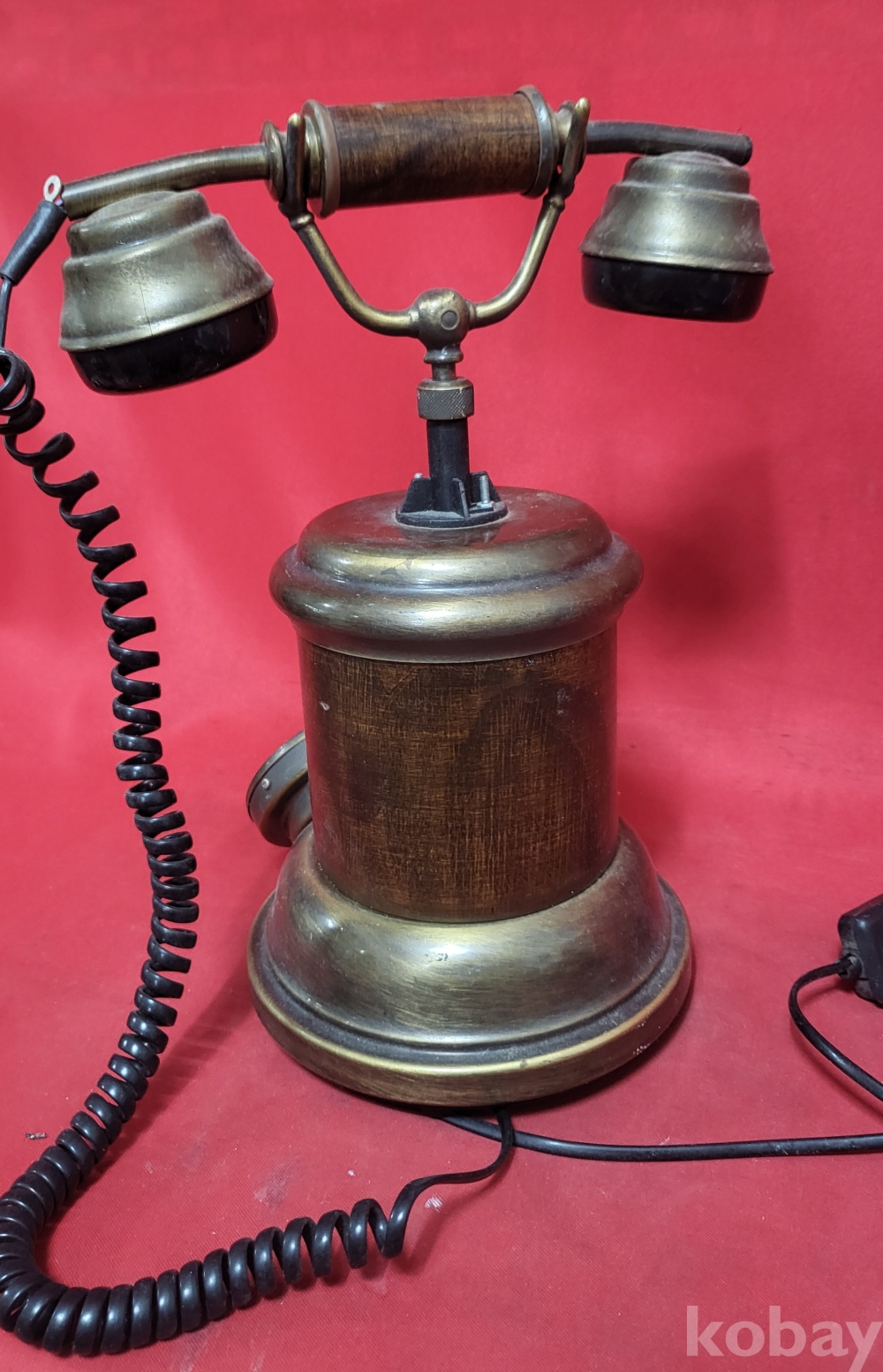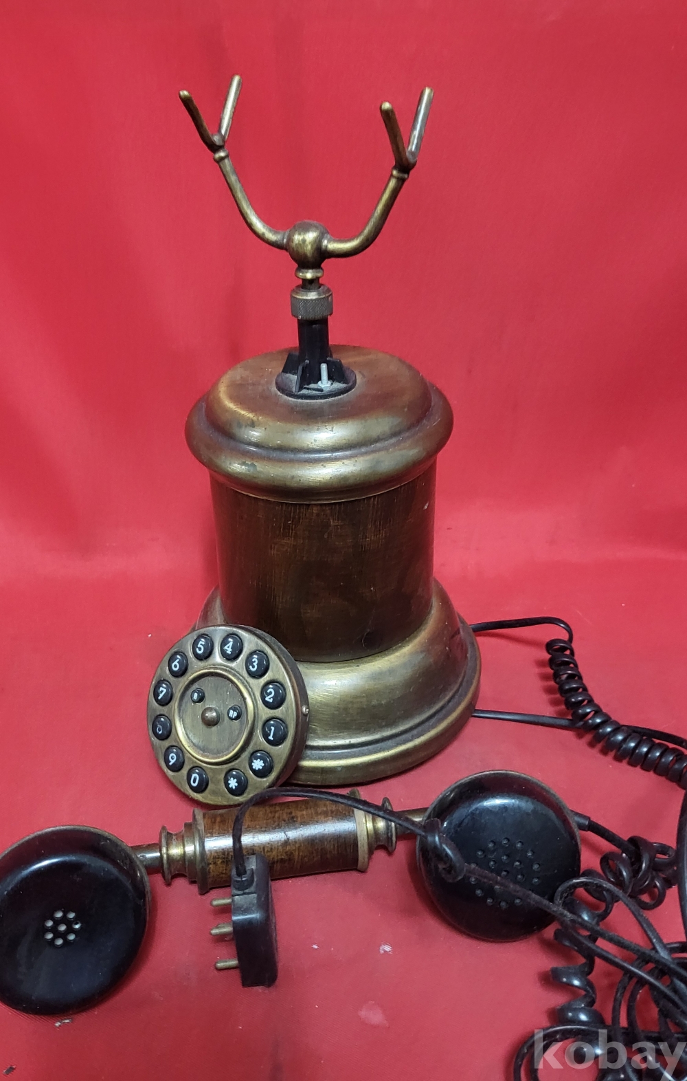 황동(黃銅)과 나무로 완성된 이탈리아 제조 옛날 버튼식 전화기입니다