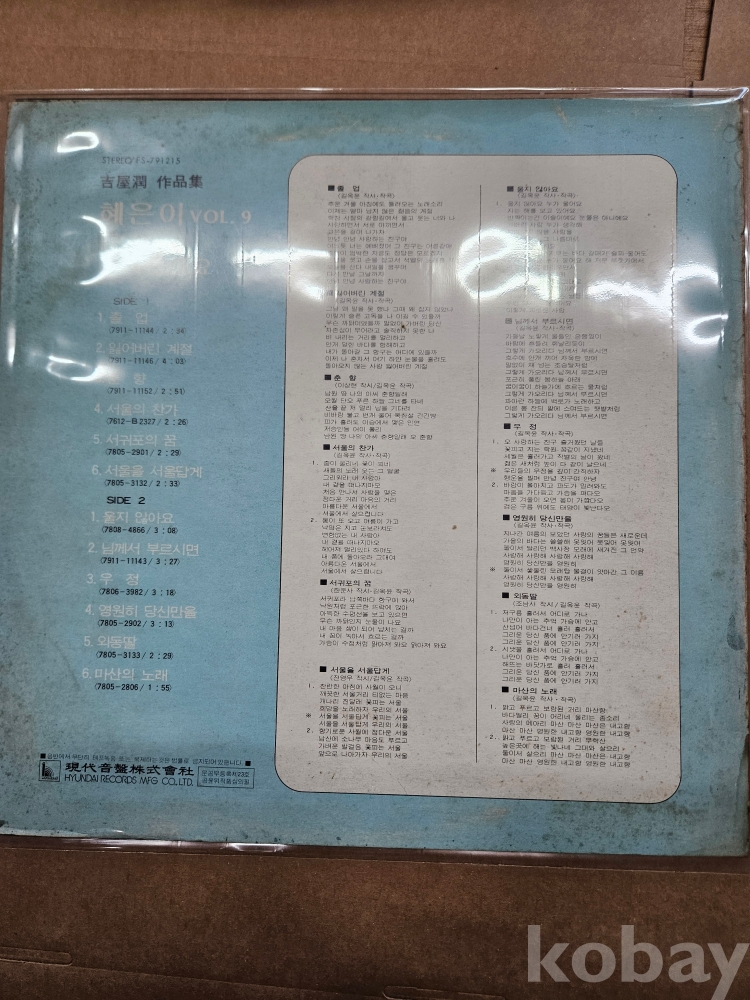 | 자켓상태 | EX : 약간의 마모, 모서리 찢김 존재 | 음반상태 | EX : 재생에 영향 없는 가벼운 기스 존재 | 발매정보 | 알수없음 | 가사지여부 | 유 |