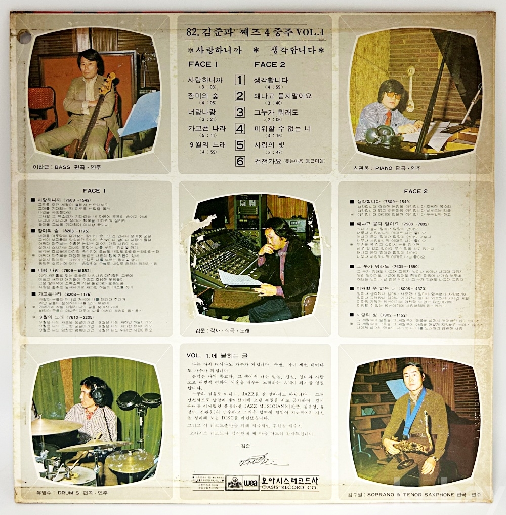 상품명 | 김준과 째즈 4중주 VOL.1 [ 사랑하니까 / 생각합니다 ] | ||