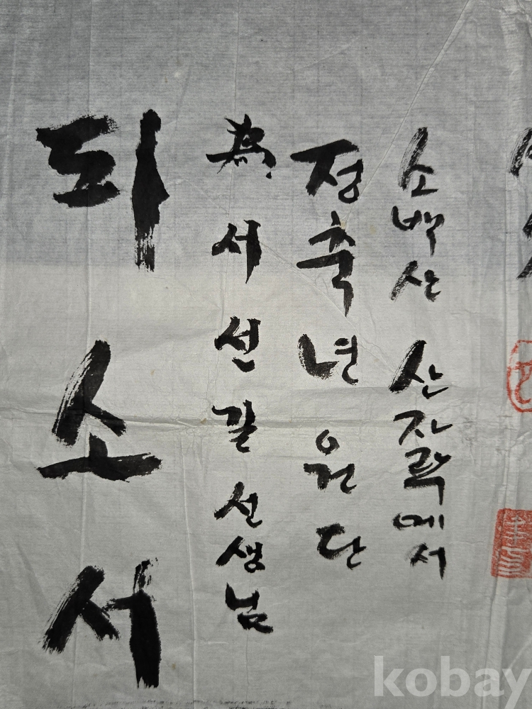 도예 1세대 자가의 松山 徐仙吉(서선길)님에게 써준 서예 1점