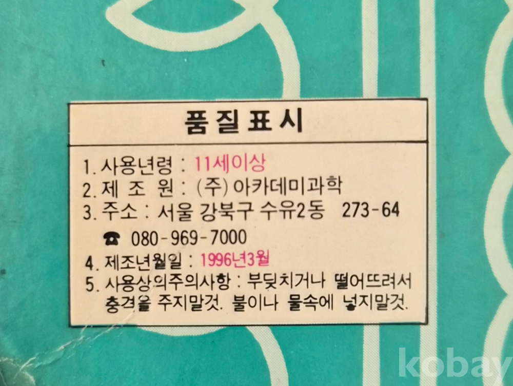 | 제조국 | 한국 | 연대 | 1980년~1999년 |