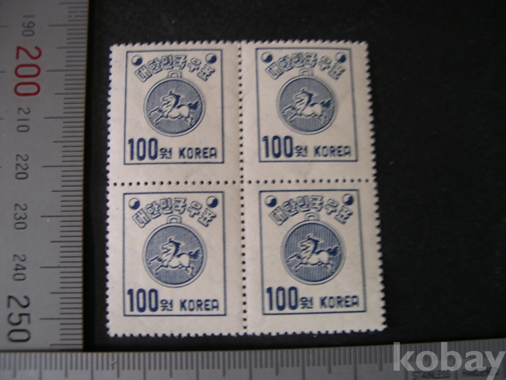4매블럭 #123 : 100원 마패 - 한국조폐공사 파형투문 (1953. 10. -)