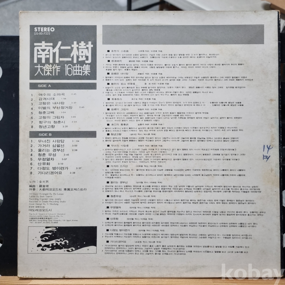(희귀음반) 남인수 대걸작집 [애수의 소야곡, 무너진 사랑탑] 대도레코드 초반 LP