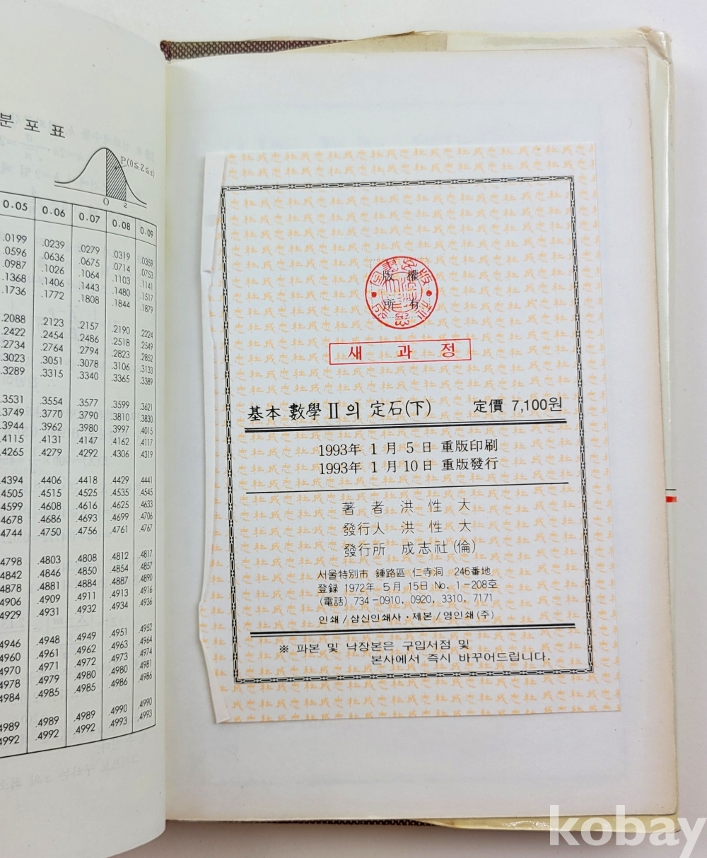 물 품 명 | 기본 수학(2)의 정석 : (하) / 총1권 / 홍성대 / 1993년 / 성지사 |