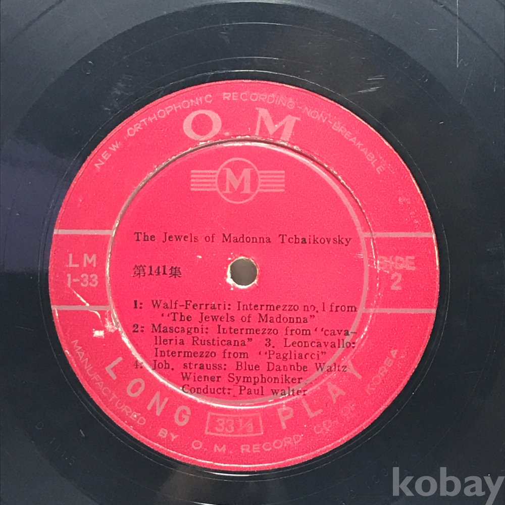10인치 LP 83,623-260 The Jewels of Madonna Tchaikovsky . 자켓 無 알판 VG 국내반