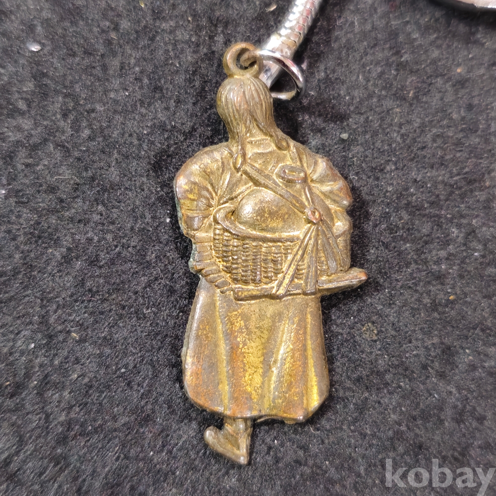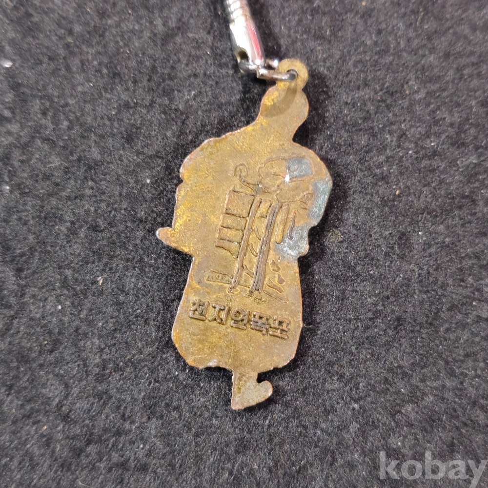 (((관광기념품/키홀더/키링/열쇠고리/가방고리))) 오래전 제주 천지연폭포 관광기념 물허벅진 여인모습 금속재질 키홀더