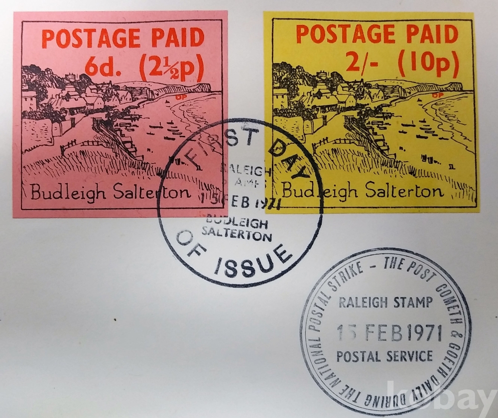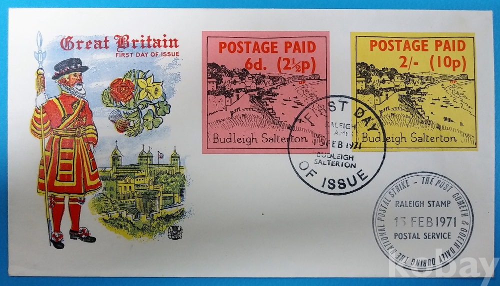 ▶[흥미우표] 1971년 영국 우편파업시 로컬우표 2½p, 10P 첩부 FDC