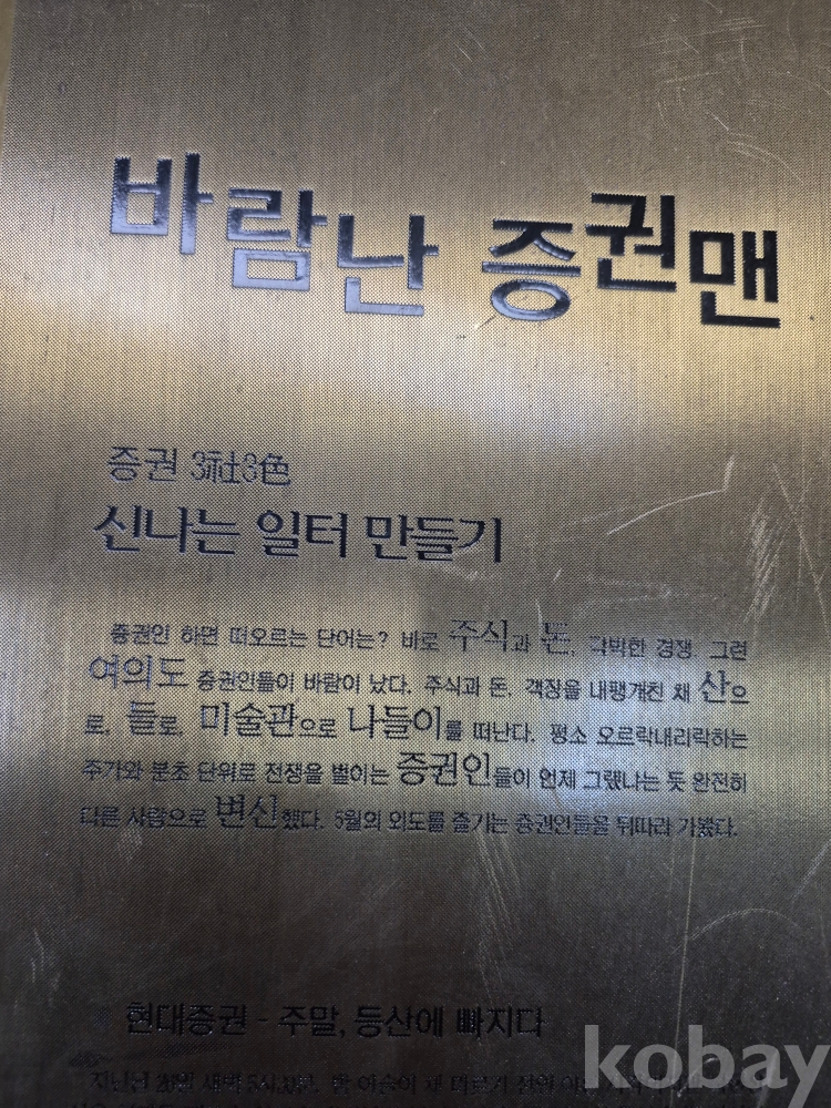 2007년 6월1일 YES 파이낸셜뉴스 바람난 증권맨 원목에 동판조각 되어 있습니다 35*57.5