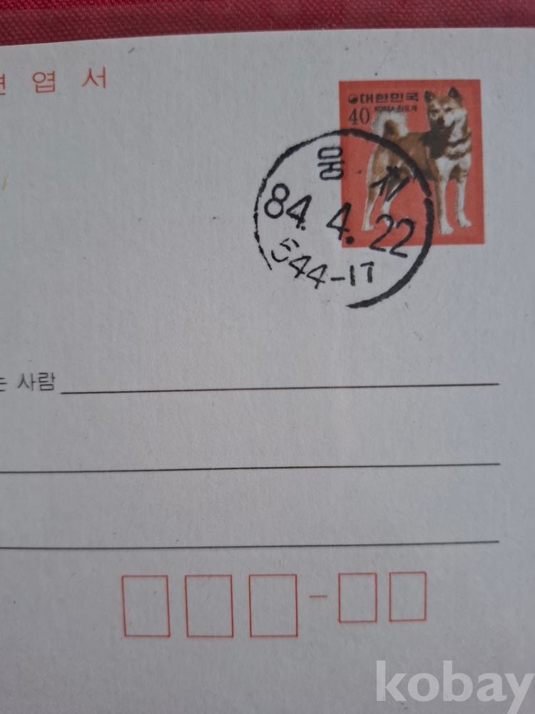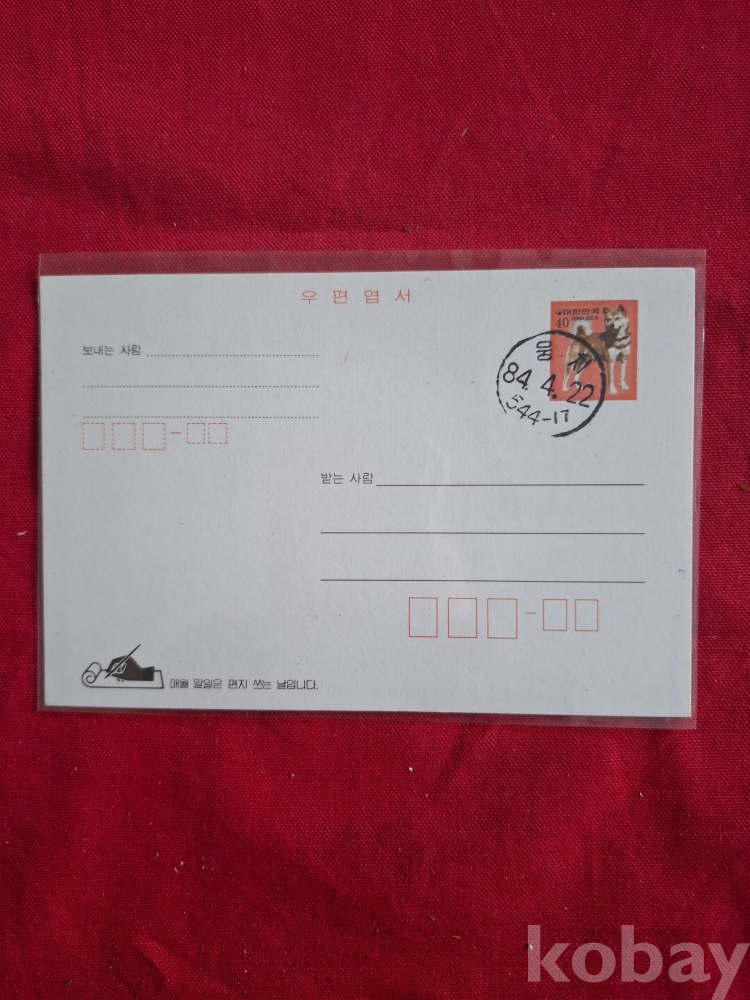 우표 모음 ----진도개 40원 우편 엽서 1장 (1984년.우체국 소인이 찍혔으나 완전 미사용 입니다)