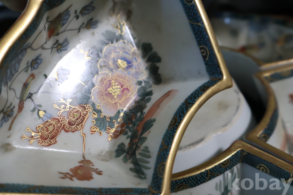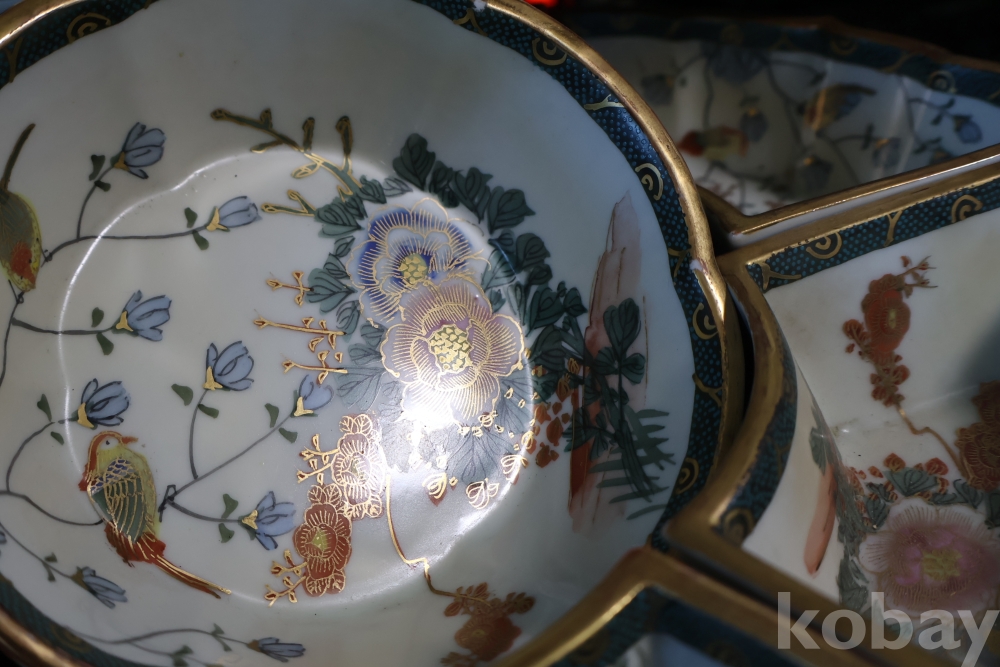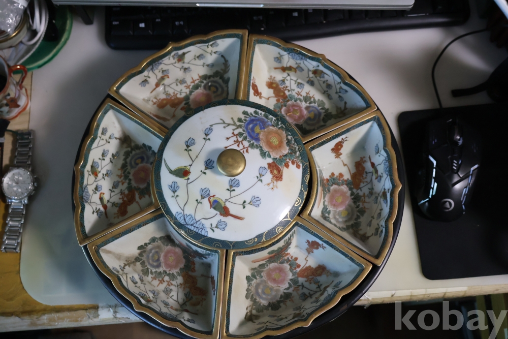 한점 한점 정성을 가진 빙빙 돌아가는 그릇 세트 임니다 묵직하고 화려한 명품 임니다 1930대 전후의 명품 임니다