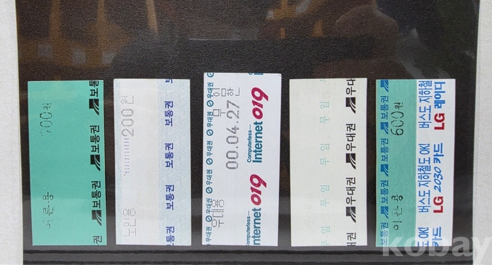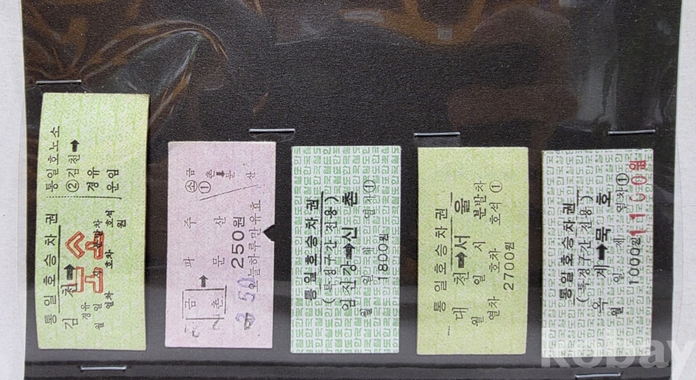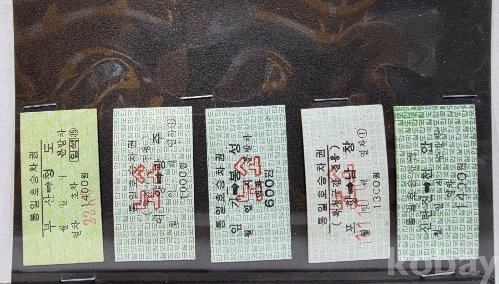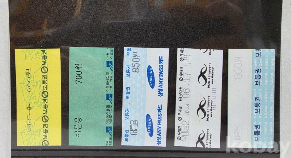 -기차, 지하철, 버스표등 다양합니다.