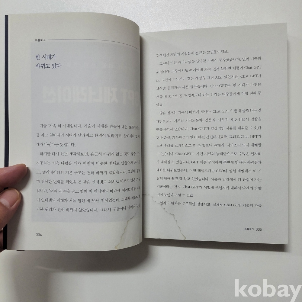 [천원경매] GPT 제너레이션_챗GPT가 바꿀 우리 인류의 미래 ; 새상품이나 습기로 인해 하단부분 얼룩. 내용 등 최상(새~상품)/ 코베-05