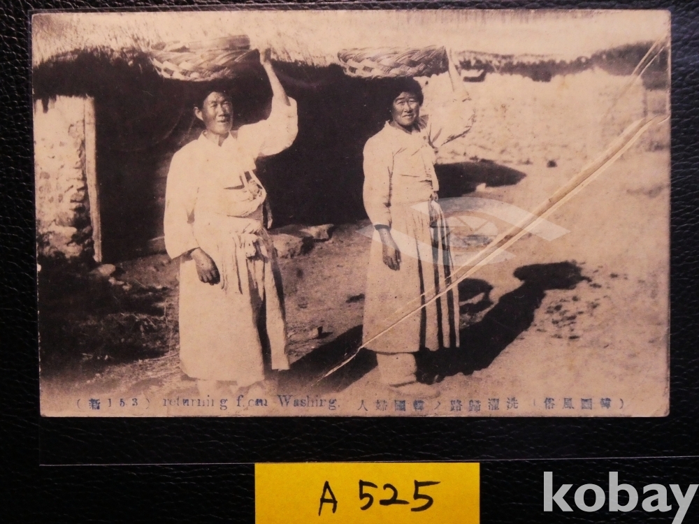▣근대한국엽서(진본): [조선풍속] 빨래하고 난 후 귀가 길의 한국연인, 1910년 한일합방 이전에 발행된 것/1매.