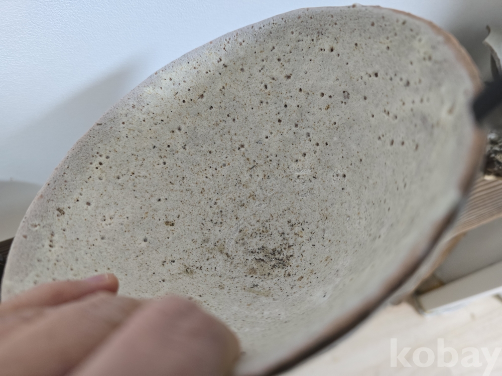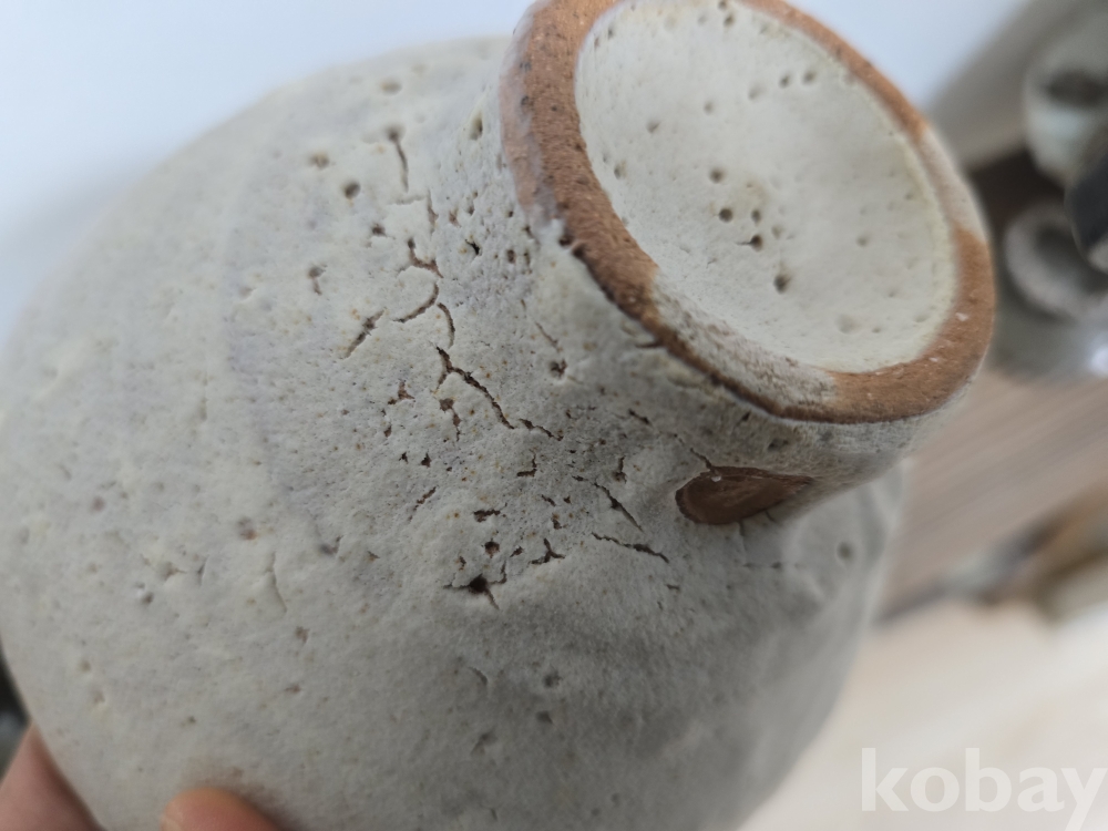 굽 닦은 흔적이랑 내화토 받침 흔적이 있어요.