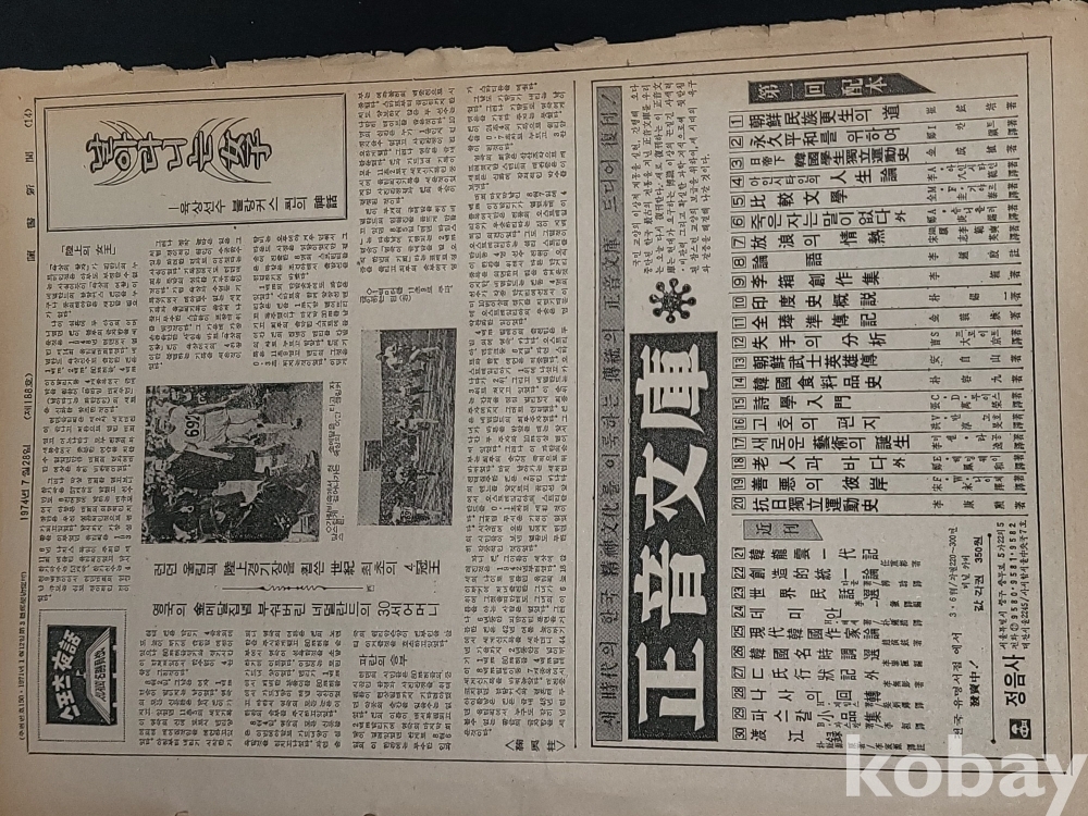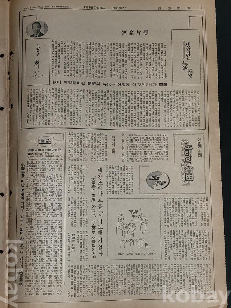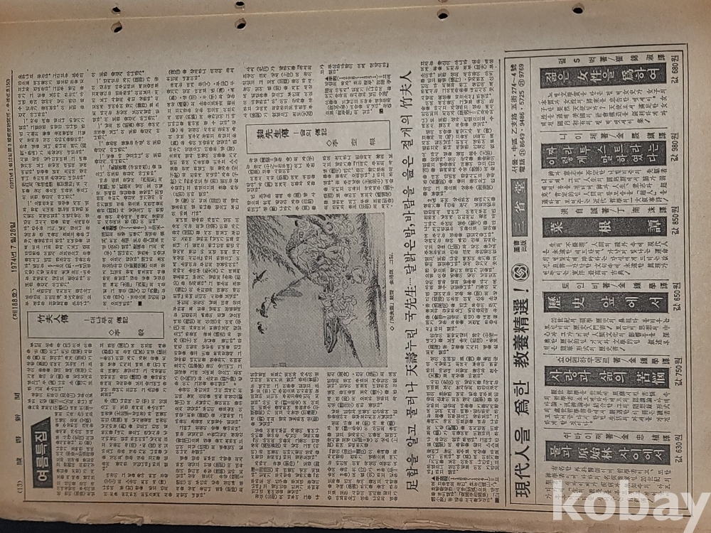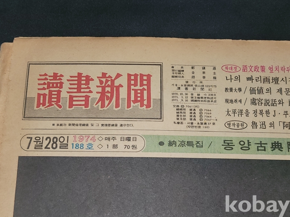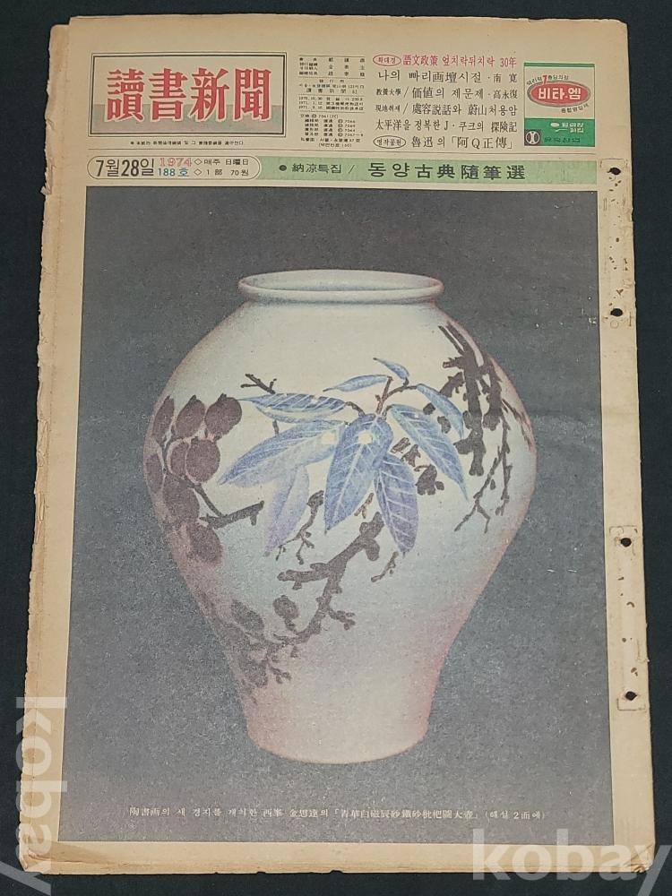 빈티지 세월 감이 느껴지는 희귀한 독서신문(讀書新聞) 1974년 7월 28일 188호 신문자료입니다.