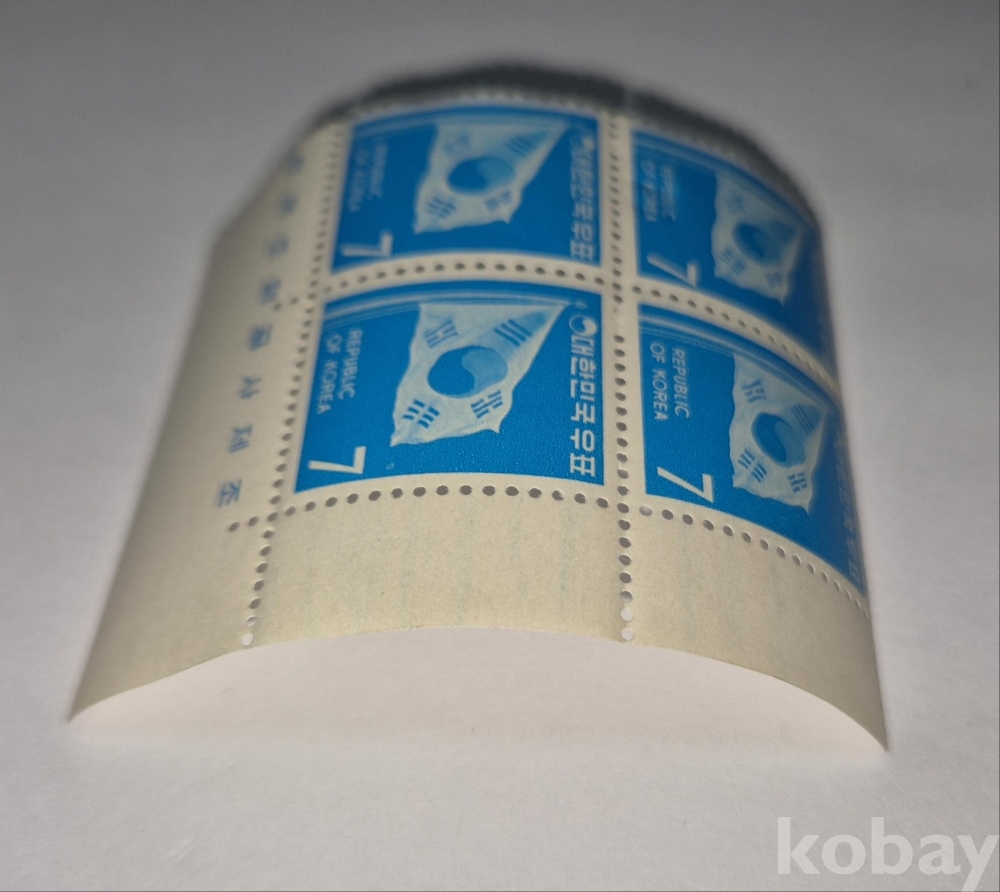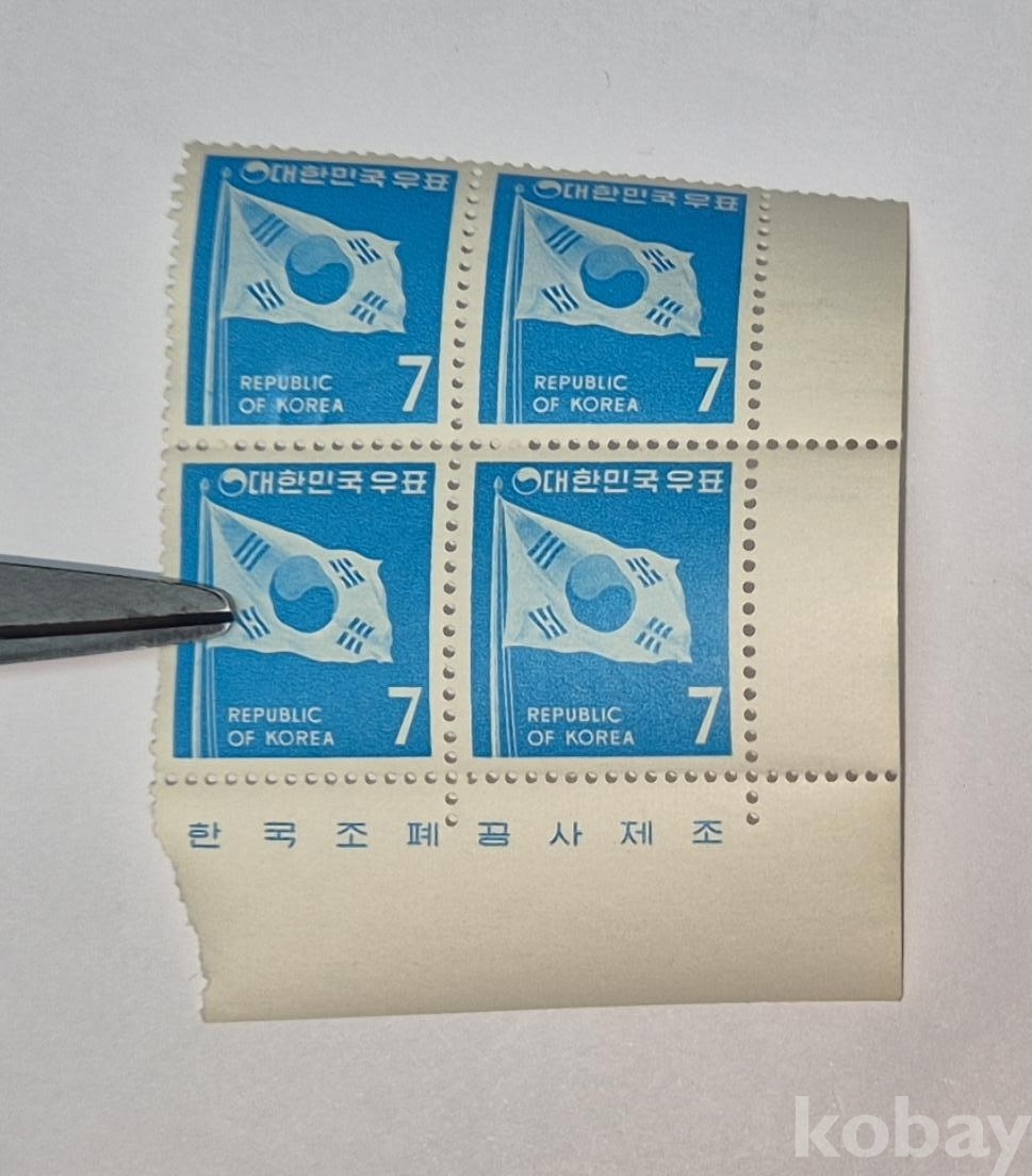 1969년 발행된 '제1차 그라비아 태극기 보통우표 7원' 명판부입니다.