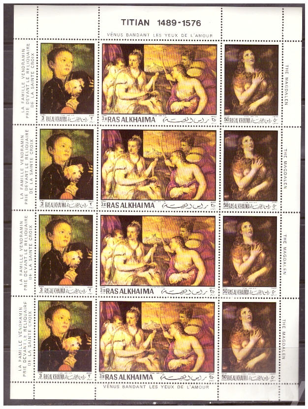 (누드명화) Ras Alkhaima (라스 알카이마) 티치아노의 누드화 sheet of 12 MNH