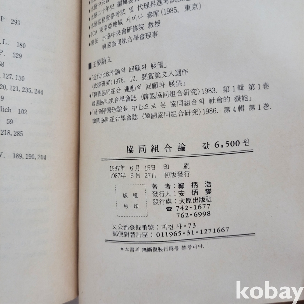 [천원경매] 1987년 협동조합론 ; 시대 귀한 자료의 도서 입니다.