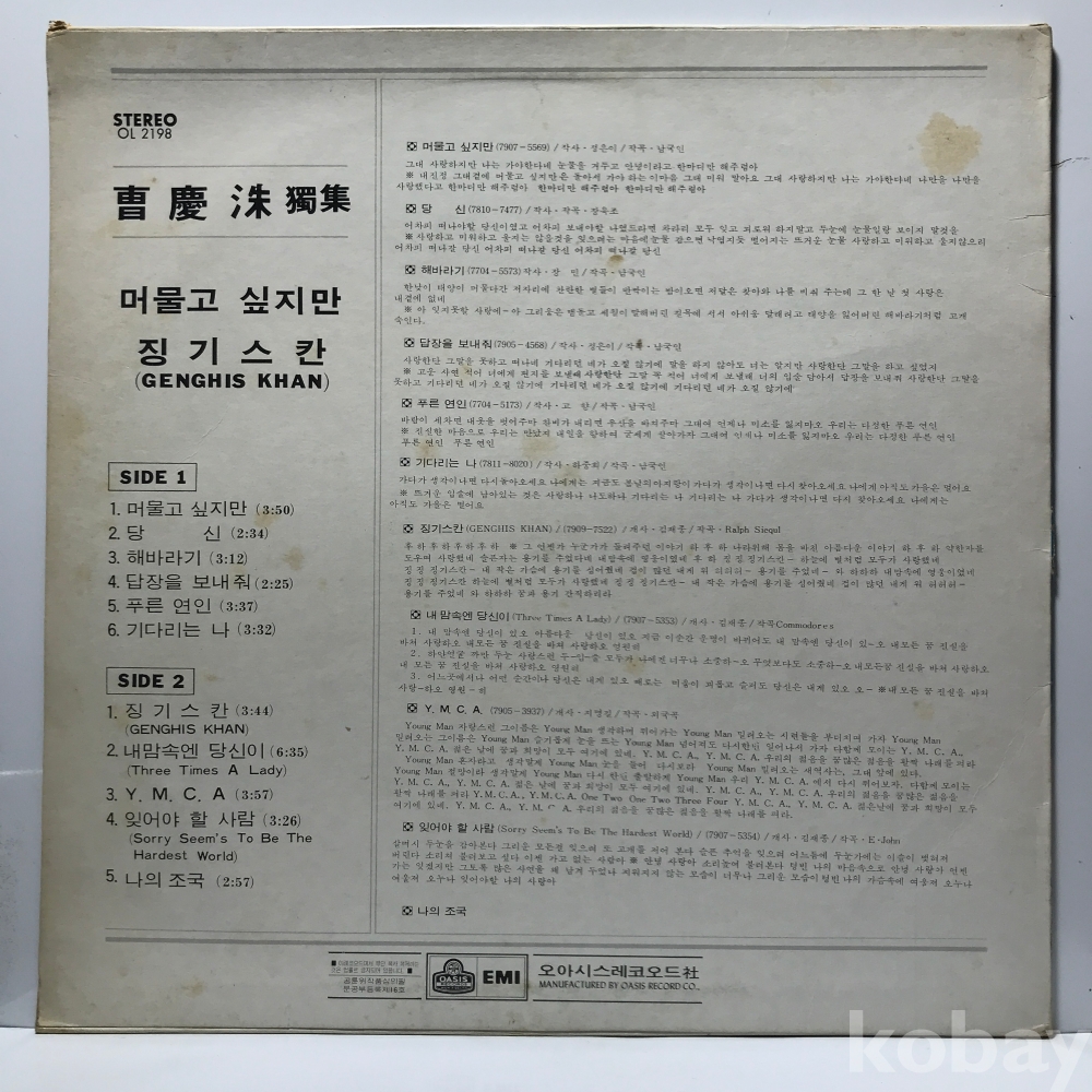 LP 32,000-116 조경수 - 머물고 싶지만 / 징기스칸 . 자켓 EX 알판 EX+ 79 년제작 국내반