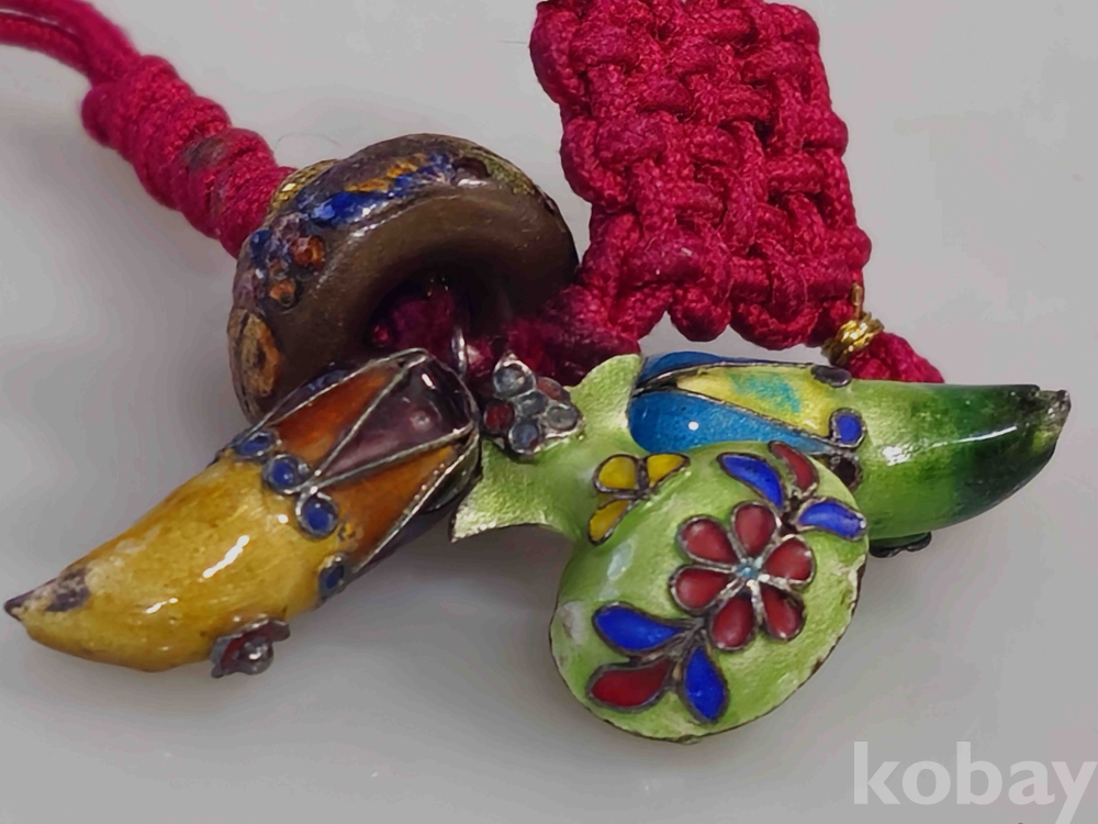 상품 설명 | 오래된 순은 칠보 삼작 노리개입니다. 재질은 순은 입니다. 상태양호하며 연대감이 좋습니다(사용감이 많으며 찍힘이나 마모된 부분이 있을 수 있슴). 참고로 사진은 확대한 상태이며 설명 못한 부분은 사진으로 대체합니다. 흔한 기물이 아니기에 소장의 가치가 높습니다. | ||