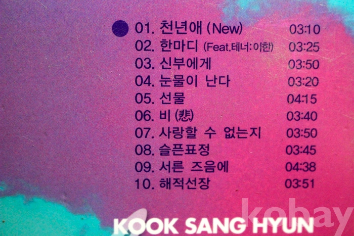 수록 곡 목은 사진을 참조하시기 바랍니다