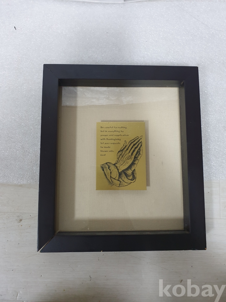 {천원경매} Y-1-2392 기도하는손 액자 (21*24, 그림 7*9.5, 한쪽부분 깨짐)