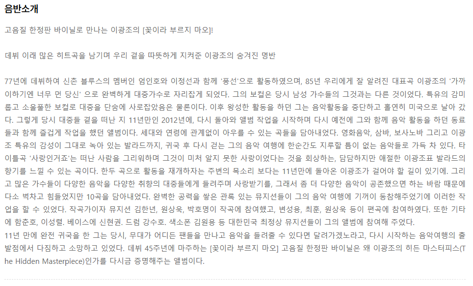 ◆미개봉◆ 이광조 (꽃이라 부르지마오) LP / 한정발매
