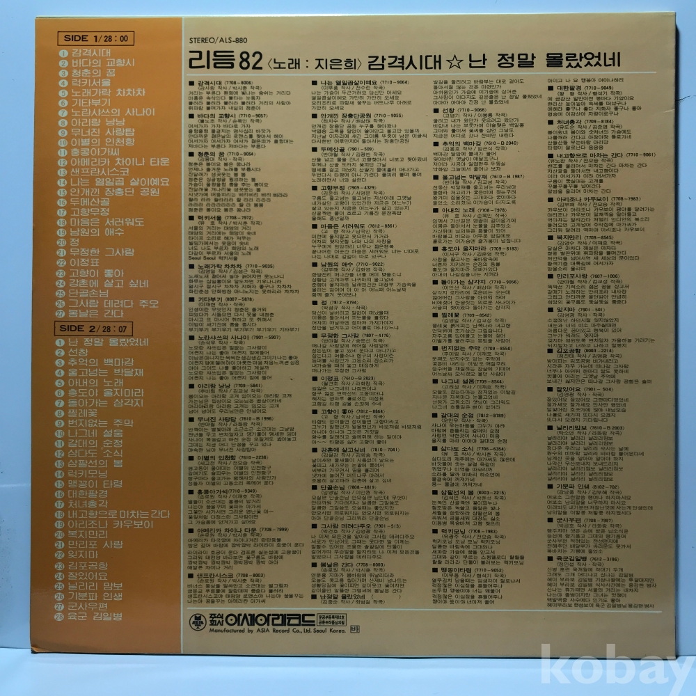 LP LP 1-21-3 리듬 82 지은희 - 감격시대/ 난 정말 몰랐었네 . 자켓 EX+ 알판 EX 81 년 국내반
