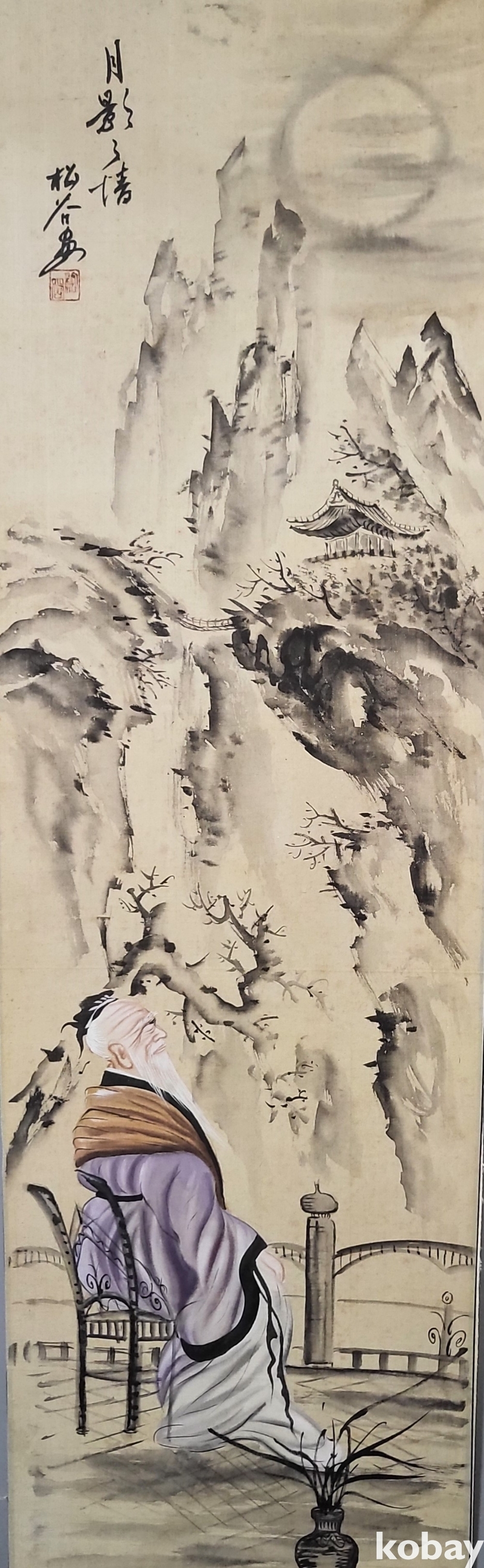 2ㅡ53호 내 냉장 우측 상 송곡번 ///// 松谷 作 비단(양사)에 채색된 명작(名作) 신선도(神仙圖)입니다,