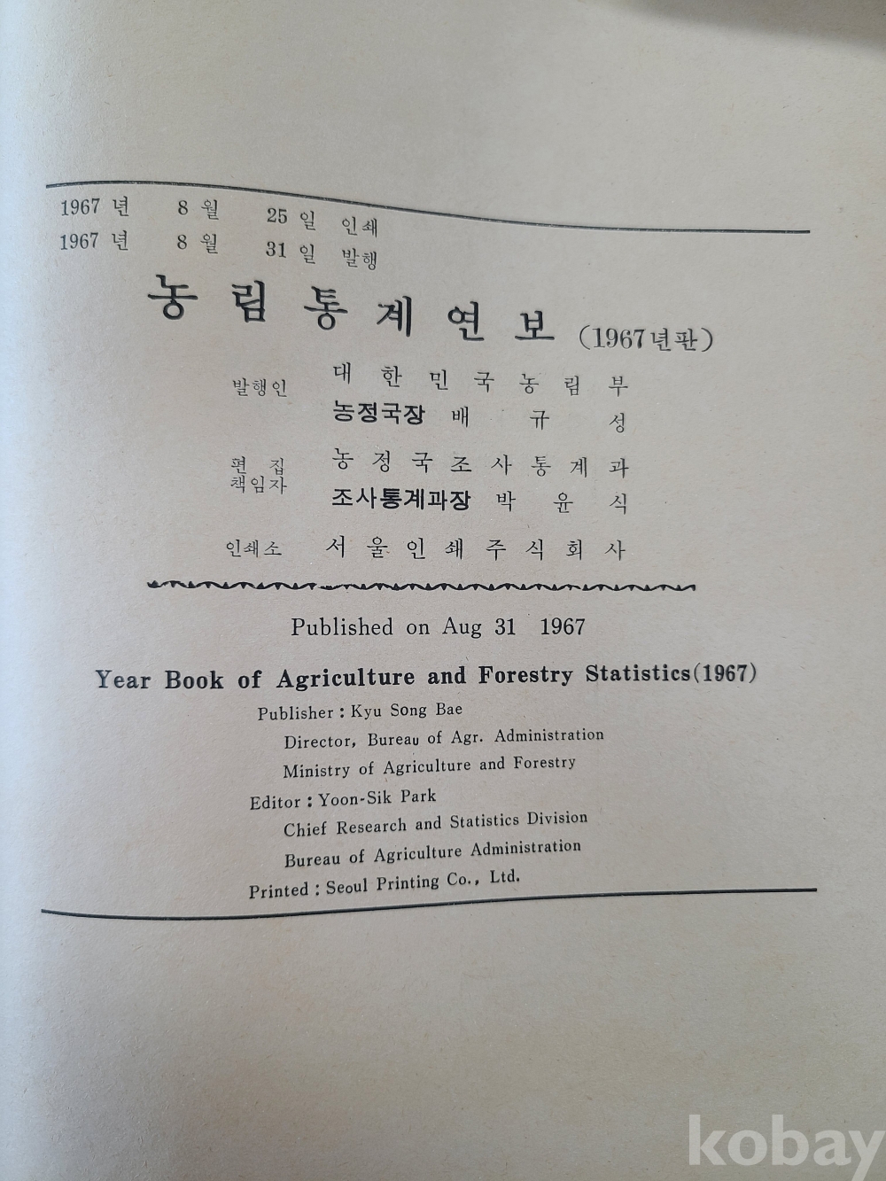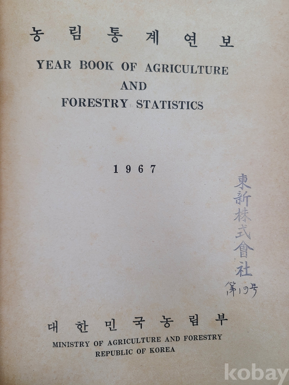 농림통계연보(1967년판)*1967년8월31일. 발행인 대한민국농림부 농정국장. 하드커버. 국한문 혼용 표기. 568쪽